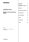 SINUMERIK 802D sl Operation and Programming Milling Valid for Control system SINUMERIK 802D sl 10/2006 Edition Software version 1.2 Introduction 1 Turning On, Reference Point Approach 2 Setting Up 3 Manually Controlled Mode 4 Automatic Mode 5 Part Programming 6 System 7 Programming 8 Cycles 9 Safety information This manual contains information that must be observed to ensure your personal safety and to prevent property damage. Notices referring to your personal safety are highlighted in the manual by a safety alert symbol; notices referring to property damage only have no safety alert symbol, and, depending on the degree of hazard, represented as shown below: ! ! ! Danger indicates that death or serious injury will result if proper precautions are not taken. Warning indicates that death or serious injury may result if proper precautions are not taken. Caution means that there can be slight physical injury if the corresponding safety measures are not followed. Caution without a safety alert symbol, indicates that property damage can result if proper precautions are not taken. Notice indicates that an undesirable event or state may arise if the relevant note is not observed. If multiple levels of hazards can occur, the warning is always displayed with the highest possible level. If a warning with a warning triangle is to indicate physical injury, the same warning may also contain information about damage to property. Qualified Personnel Start–up and operation of the device/equipment/system in question must only be performed using this documentation. Only qualified personnel should be allowed to commission and operate the device/system. Qualified personnel as referred to in the safety guidelines in this documentation are those who are authorized to start up, earth and label units, systems and circuits in accordance with the relevant safety standards. Proper Use Please note the following: ! Warning The unit may be used only for the applications described in the catalog or the technical description, and only in combination with equipment, components and devices supplied by other -manufacturers where recommended or permitted by Siemens. This product can only function correctly and safely if it is transported, stored, set up, and installed correctly, and operated and maintained as recommended. Trademarks All designations with the trademark symbol ® are registered trademarks of Siemens AG. Other designations in this documentation may be trademarks whose use by third parties for their own purposes may infringe the rights of the owner. Disclaimer of Liability We have checked the contents of the documentation for consistency with the hardware and software described. Since deviations cannot be precluded entirely, we cannot guarantee full agreement. The information given in this publication is reviewed at regular intervals and any corrections that might be necessary are made in the subsequent editions. Siemens AG Automation and Drives P.O. Box 4848 90437 NUREMBERG GERMANY Copyright (E) Siemens AG 2006. 6FC5398–0CP10–2BA0 Siemens AG 2006 Subject to change without prior notice. Foreword SINUMERIK documentation The SINUMERIK documentation is organized in 3 parts: S General documentation S User documentation S Manufacturer/service documentation An overview of publications (updated monthly) indicating the language versions available can be found on the Internet at: http://www.siemens.com/motioncontrol Select the menu items ”Support” ’ ”Technical documentation” ’ ”Overview of publications”. The Internet version of DOConCD (DOConWEB) is available at: http://www.automation.siemens.com/doconweb Information about training courses and FAQs (Frequently Asked Questions) can be found at the following website: http://www.siemens.com/motioncontrol and there under the menu item ”Support”. Target group This document is designed for machine tool manufacturers. The present documentation provides all information required by the manufacturer to start up the SINUMERIK 802D sl CNC. Standard scope The present Operating Instructions describe the functionality of the standard scope. Additions or revisions made by the machine manufacturer are documented by the machine manufacturer. Other functions not described in this documentation might be executable in the control. However, no claim can be made regarding the availability of these functions when the equipment is first supplied or in the event of servicing. SINUMERIK 802D sl Operation and Programming Milling (BP–F), 10/2006 Edition 6FC5398–0CP10–2BA0 iii Foreword Technical support If you have any technical questions, please contact our hotline: Europe/Africa Asia/Australia America Phone +49 180 5050 222 +86 1064 719 990 +1 423 262 2522 Fax +49 180 5050 223 +86 1064 747 474 +1 423 262 2289 Internet http://www.siemens.com/automation/support–request E–Mail mailto:adsupport@siemens.com Note Country–specific telephone numbers for technical support are provided under the following Internet address: http://www.siemens.com/automation/service&support Questions about the manual Please send any queries about the documentation (suggestions or corrections) to the following fax number or e–mail address: Fax: +49 9131 98 63315 E–mail: mailto:docu.motioncontrol@siemens.com Fax form: See the reply form at the end of the document. Internet address http://www.siemens.com/sinumerik EC Declaration of Conformity The EC Declaration of Conformity for the EMC Directive can be found/obtained: On the Internet: http://www.ad.siemens.de/csinfo Under product/order no. 15257461 or from the relevant branch office of the A&D MC Division of Siemens AG. iv SINUMERIK 802D sl Operation and Programming Milling (BP–F), 10/2006 Edition 6FC5398–0CP10–2BA0 Contents Contents 1 Introduction . . . . . . . . . . . . . . . . . . . . . . . . . . . . . . . . . . . . . . . . . . . . . . . . . . . . . . . . . . . . . . . . . . 1-11 1.1 Screen layout . . . . . . . . . . . . . . .