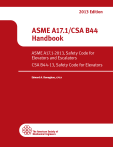 2013 Edition ASME A17.1/CSA B44 Handbook ASME A17.1-2013, Safety Code for Elevators and Escalators CSA B44-13, Safety Code for Elevators Edward A. Donoghue, cpca 2013 Edition ASME A17.1/CSA B44 Handbook ASME A17.1-2013, Safety Code for Elevators and Escalators CSA B44-13, Safety Code for Elevators Edward A. Donoghue, CPCA Two Park Avenue • New York, NY • 10016 USA No part of this document may be reproduced in any form, in an electronic retrieval system or otherwise, without the prior written permission of the publisher. Copyright © 2014 by THE AMERICAN SOCIETY OF MECHANICAL ENGINEERS All rights reserved Printed in U.S.A. CONTENTS Introduction . . . . . . . . . . . . . . . . . . . . . . . . . . . . . . . . . . . . . . . . . . . . . . . . . . . . . . . . . . . . . . . . . . . . . . . . . . . Foreword . . . . . . . . . . . . . . . . . . . . . . . . . . . . . . . . . . . . . . . . . . . . . . . . . . . . . . . . . . . . . . . . . . . . . . . . . . . . . . Acknowledgments . . . . . . . . . . . . . . . . . . . . . . . . . . . . . . . . . . . . . . . . . . . . . . . . . . . . . . . . . . . . . . . . . . . . . Summary of Code Changes . . . . . . . . . . . . . . . . . . . . . . . . . . . . . . . . . . . . . . . . . . . . . . . . . . . . . . . . . . . . vii viii xii xiii Part 1 1.1 1.2 1.3 General. . . . . . . . . . . . . . . . . . . . . . . . . . . . . . . . . . . . . . . . . . . . . . . . . . . . . . . . . . . . . . Scope . . . . . . . . . . . . . . . . . . . . . . . . . . . . . . . . . . . . . . . . . . . . . . . . . . . . . . . . . . . . . . Purpose and Exceptions . . . . . . . . . . . . . . . . . . . . . . . . . . . . . . . . . . . . . . . . . . . . . Definitions . . . . . . . . . . . . . . . . . . . . . . . . . . . . . . . . . . . . . . . . . . . . . . . . . . . . . . . . . 1 1 1 3 Part 2 Electric Elevators. . . . . . . . . . . . . . . . . . . . . . . . . . . . . . . . . . . . . . . . . . . . . . . . . . . . . Scope . . . . . . . . . . . . . . . . . . . . . . . . . . . . . . . . . . . . . . . . . . . . . . . . . . . . . . . . . . . . . . Construction of Hoistways and Hoistway Enclosures . . . . . . . . . . . . . . . . . Pits . . . . . . . . . . . . . . . . . . . . . . . . . . . . . . . . . . . . . . . . . . . . . . . . . . . . . . . . . . . . . . . . . Location and Guarding of Counterweights . . . . . . . . . . . . . . . . . . . . . . . . . . Vertical Clearances and Runbys for Cars and Counterweights . . . . . . . . Horizontal Car and Counterweight Clearances . . . . . . . . . . . . . . . . . . . . . . . Protection of Space Below Hoistways . . . . . . . . . . . . . . . . . . . . . . . . . . . . . . . . Machinery Spaces, Machine Rooms, Control Spaces, and Control Rooms . . . . . . . . . . . . . . . . . . . . . . . . . . . . . . . . . . . . . . . . . . . . . . . . . . . . . . . . . . . Equipment in Hoistways, Machinery Spaces, Machine Rooms, Control Spaces, and Control Rooms . . . . . . . . . . . . . . . . . . . . . . . . . . . . . . . Machinery and Sheave Beams, Supports, and Foundations . . . . . . . . . . . Guarding of Equipment and Standard Railing . . . . . . . . . . . . . . . . . . . . . . . Protection of Hoistway Openings . . . . . . . . . . . . . . . . . . . . . . . . . . . . . . . . . . . . Hoistway-Door Locking Devices and Electric Contacts, and Hoistway Access Switches . . . . . . . . . . . . . . . . . . . . . . . . . . . . . . . . . . . . . . . . . . . . . . . . . . Power Operation of Hoistway Doors and Car Doors . . . . . . . . . . . . . . . . . Car Enclosures, Car Doors and Gates, and Car Illumination . . . . . . . . . . Car Frames and Platforms . . . . . . . . . . . . . . . . . . . . . . . . . . . . . . . . . . . . . . . . . . Capacity and Loading . . . . . . . . . . . . . . . . . . . . . . . . . . . . . . . . . . . . . . . . . . . . . . Car and Counterweight Safeties . . . . . . . . . . . . . . . . . . . . . . . . . . . . . . . . . . . . . Speed Governors . . . . . . . . . . . . . . . . . . . . . . . . . . . . . . . . . . . . . . . . . . . . . . . . . . . Ascending Car Overspeed and Unintended Car Movement Protection . . . . . . . . . . . . . . . . . . . . . . . . . . . . . . . . . . . . . . . . . . . . . . . . . . . . . . . . Suspension Means and Their Connections . . . . . . . . . . . . . . . . . . . . . . . . . . . Counterweights . . . . . . . . . . . . . . . . . . . . . . . . . . . . . . . . . . . . . . . . . . . . . . . . . . . . . Buffers and Bumpers . . . . . . . . . . . . . . . . . . . . . . . . . . . . . . . . . . . . . . . . . . . . . . . Car and Counterweight Guide Rails, Guide-Rail Supports, and Fastenings . . . . . . . . . . . . . . . . . . . . . . . . . . . . . . . . . . . . . . . . . . . . . . . . . . . . . . . . Driving Machines and Sheaves . . . . . . . . . . . . . . . . . . . . . . . . . . . . . . . . . . . . . . Terminal Stopping Devices . . . . . . . . . . . . . . . . . . . . . . . . . . . . . . . . . . . . . . . . . . Operating Devices and Control Equipment . . . . . . . . . . . . . . . . . . . . . . . . . . Emergency Operation and Signaling Devices . . . . . . . . . . . . . . . . . . . . . . . . Layout Data . . . . . . . . . . . . . . . . . . . . . . . . . . . . . . . . . . . . . . . . . . . . . . . . . . . . . . . . Identification . . . . . . . . . . . . . . . . . . . . . . . . . . . . . . . . . . . . . . . . . . . . . . . . . . . . . . . 5 5 5 21 27 29 34 41 2.1 2.2 2.3 2.4 2.5 2.6 2.7 2.8 2.9 2.10 2.11 2.12 2.13 2.14 2.15 2.16 2.17 2.18 2.19 2.20 2.21 2.22 2.23 2.24 2.25 2.26 2.27 2.28 2.29 Part 3 3.1 Hydraulic Elevators . . . . . . . . . . . . . . . . . . . . . . . . . . . . . . . . . . . . . . . . . . . . . . . . . . . Scope . . . . . . . . . . . . . . . . . . . . . . . . . . . . . . . . . . . . . . . . . . . . . . . . . . . . . . . . . . . . . . Construction of Hoistways and Hoistway Enclosures . . . . . . . . . . . . . . . . . iii 41 52 59 67 67 93 103 124 142 151 155 168 174 188 197 198 205 208 227 240 307 358 358 359 359 359 3.4 3.18 3.19 3.2