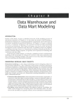 Chapter 8 Data Warehouse and Data Mart Modeling INTRODUCTION Earlier in this book, we gave a detailed overview of the modeling process of operational databases. In Chapter 2, we described the details of ER modeling, a predominant technique for visualizing database requirements used extensively for conceptual modeling of operational databases. In Chapter 3, we gave a detailed overview of relational modeling as the standard method for logical modeling of operational databases. Both these techniques can also be used during the development of data warehouses and data marts. In addition to these two methods, a modeling technique known as dimensional modeling, tailored specifically for analytical database design purposes, is regularly used in practice for modeling data warehouses and data marts. In the first part of this chapter, we will give a detailed overview of dimensional modeling. In the second part, we will give an overview of the most commonly used data warehouse modeling strategies with respect to how they utilize ER modeling, relational modeling, and dimensional modeling. DIMENSIONAL MODELING: BASIC CONCEPTS Dimensional modeling is a data design methodology used for designing subject-oriented analytical databases (i.e., data, warehouses or data marts). Commonly, dimensional modeling is employed as a relational data modeling technique. As a relational modeling technique, dimensional modeling designs relational tables that have primary keys and are connected to each other via foreign keys, while conforming to the standard relational integrity constraints. In addition to using the regular relational concepts (primary keys, foreign keys, integrity constraints, etc.), dimensional modeling distinguishes two types of tables--dimensions and facts: • Dimension tables (dimensions) contain descriptions of the business, organization, or enterprise to which the subject of analysis belongs. Columns in dimension tables contain descriptive information that is often textual (e.g., product brand, product color, customer gender, customer education level), but can also be numeric (e.g., product weight, customer income level). This information provides a basis for analysis of the subject. For example, if the subject of the business analysis is sales, it can be analyzed by product brand, customer gender, customer income level, and so on. • Fact tables contain measures related to the subject of analysis. In addition, fact tables contain foreign keys associating them with dimension tables. The measures in the fact tables are typically numeric and are intended for mathematical 225 226 Part 2 • Analytical Databases Dimension 1 D1Key (PK) DlAttributel D1Attribute2 DlAttributelast Dimensions i, i+l, i+2, ... -- -----. SUBJECT Fact table - J DlKey (FK) D2Key (FK) (FKs) Dimension 2 D2Key (PK) D2Attributel D2Attribute2 ... D2Attributelast - DnKey(FK) ~ FactMeasurel (possible other FactMeasures) Dimension n DnKey (PK) DnAttributel DnAttribute2 ... DnAttributeLast FIGURE 8 .1 A dimensional model (star schema). computation and quantitative analysis. For example, if the subject of the business analysis is sales, one of the measures in the fact table sales could be the sale's dollar amount. The sale amounts can be calculated and recalculated using different mathematical functions across various dimension columns. For example, the total and average sale can be calculated per product brand, customer gender, customer income level, and so on. The result of relational dimensional modeling is a dimensional relational schema containing facts and dimensions, shown in Figure 8.L The dimensional schema is often referred to as the star schema. A dimension table contains a primary key and attributes that are used for analysis of the measures in the fact tables. A fact table contains fact-measure attributes and foreign keys that connect the fact table to the dimension tables. In this book, we mark fact tables with a bolded thicker frame to distinguish them from the dimension tables in the figures. The primary key of a fact table is a composite key that combines foreign key columns and/or other columns in the fact table (we will elaborate on this later in this chapter). Even though any order of columns in a fact table (or in any table, for that matter) is acceptable, for readability reasons, in examples of star schema in this book we will always show measures in the fact table as the last columns in the table. INITIAL EXAMPLE: DIMENSIONAL MODEL BASED ON A SINGLE SOURCE The following example illustrates the basic concepts of dimensional modeling. This example uses the same fictional scenario involving the database for the ZAGI Retail Company Sales Department used in Chapters 2 and 3. Figures illustrating the ZAGI Retail Company Sales Department Database and its records are repeated here for convenience. Figure 8.2 (same as Figure 3.32) shows the ER diagram and the resulting relational schema for the ZAGI Retail Company Sales Department Database. Figure 8.3 (same as Figure 3.33) shows the records in the relational database for the ZAGI Retail Company Sales Department Database. Based on its operational database (the ZAGI Retail Company Sales Department Database) shown in Figures 8.2 and 8.3, the ZAGI Retail Company decides to use the dimensional modeling technique to design an analytical database whose subject of analysis is sales. The result of this process is the star schema shown in Figure 8.4. In the star schema, the chosen subject of analysis is represented by a fact table. In this example, the chosen subject of analysis (sales) is represented by the SALES fact table. Chapter 8 • Data Warehouse and Data Mart Modeling 227 PRODUCT ProductID REGION RegionID RegionName ProductName ProductPrice Vendor!D (FK) Category!D (FK) STORE StoreID StoreZip Region!D (FK) VENDOR 1--------- VendorID VendorName SOLDVIA CATEGORY ProductID (FK) TIO (FK) CategoryID NoOfltems CategoryName CUSTOMER SALESTRANSACTION TIO TDate Store!D (FK) Customer