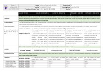 School Grade 8 Teacher MATHEMATICS DAILY LESSON LOG Teaching Dates and Time AUGUST 29, 2022 RIZAL NATONAL HIGH SCHOOL Grade Level 8 Learning Area FLORENCE P. ROLLO WEEK 1 (AUG. 30- SEP. 2, 2022)7 AUGUST 30, 2022 (SET B) MATHEMATICS Quarter AUGUST 31, 2022 (SET B) 1st SEPTEMBER 1, 2022 (SET SEPTEMBER 2, 2022 (SET A) A) Objectives must be met over the week and connected to the curriculum standards. To meet the objectives, necessary procedures must be followed and if needed, additional lessons, exercises and remedial activities may be done for I. OBJECTIVES developing content knowledge and competencies. These are assessed using Formative Assessment strategies. Valuing objectives support the learning of content and competencies and enable children to find significance and joy in learning the lessons. Weekly objectives shall be derived from the curriculum guides. 1. The demonstrates understanding of key concepts of factors of polynomials, rational algebraic expressions, linear equations and inequalities in two variables, systems of linear equations A. Content Standards and inequalities in two variables and linear functions. 1. The student is able to formulate reallife problems involving factors of polynomials, rational algebraic expressions, linear equations and inequalities in two variables, systems of linear B. Performance Standards equations and inequalities in two variables and linear functions, and solve these problems accurately using a variety of strategies. C. Learning Competencies / Objectives Write the LC code for each NATIONAL HOLIDAY At the end of the session, learners At the end of the session, learners are At the end of the session, learners are At the end of the session, learners are expected to: expected to: expected to: are expected to: A. factors completely different types factors completely different types of factors completely different types of factors completely different types of of polynomials (polynomials with polynomials (polynomials with polynomials (polynomials with polynomials (polynomials with common factor, common monomial factor, difference common monomial factor, difference common monomial factor, difference of two squares, sum and of two squares, sum and difference of of two squares, sum and difference of difference of two squares, sum and difference of two cubes, perfect two cubes, perfect square trinomials, two cubes, perfect square trinomials, difference of two cubes, perfect square and general trinomials). and general trinomials). square trinomials, and general monomial trinomials, and general trinomials). trinomials). Content is what the lesson is all about. It pertains to the subject matter that the teacher aims to teach. In the CG, the content can be tackled in a week or two. II. CONTENT Factoring Polynomials NATIONAL HOLIDAY III. LEARNING RESOURCES Factoring Polynomials Factoring Polynomials Factoring Polynomials List the materials to be used in different days. Varied sources of materials sustain children’s interest in the lesson and in learning. Ensure that there is a mix of concrete and manipulative materials as well as paper-based materials. Hands-on learning promotes concept development. A. References NATIONAL HOLIDAY K to 12 BEP TG-Math 8, LM Math 8, K to 12 BEP TG-Math 8, LM Math 8, K to 12 BEP TG-Math 8, LM Math 8, K to 12 BEP TG-Math 8, LM Math 8, Quarter 1: Math 8 - Module 1 Quarter 1: Math 8 - Module 1 Quarter 1: Math 8 - Module 1 Quarter 1: Math 8 - Module 1 1. Teacher’s Guide pages NATIONAL HOLIDAY Page 1-5 Page 1-5 Page 1-5 Page 1-5 2. Learner’s Materials pages NATIONAL HOLIDAY Module 1 Module 1 Module 1 Module 1 3. Textbook pages NATIONAL HOLIDAY None None None None 4.Additional Materials from NATIONAL HOLIDAY None None None None Learning Resource (LR) portal B. Other Learning Resources NATIONAL HOLIDAY MELCs MELCs MELCs MELCs These steps should be done across the week. Spread out the activities appropriately so that students will learn well. Always be guided by demonstration of learning by the students which you can infer from formative assessment IV. PROCEDURES activities. Sustain learning systematically by providing students with multiple ways to learn new things, practice their learning, question their learning processes, and draw conclusions about what they learned in relation to their life experiences and previous knowledge. Indicate the time allotment for each step. A. Reviewing previous lesson or NATIONAL HOLIDAY presenting the new lesson B. Establishing a purpose for the NATIONAL HOLIDAY lesson C. Presenting examples/ instances of the new lesson NATIONAL HOLIDAY Begin with some interesting and To check students understanding on Begin with some interesting and To check students understanding on challenging activities that will enable factoring difference of two squares, ask challenging activities that will enable the factoring difference of two squares, the students to see the association of them to make pairs of square terms and students to see the association of ask them to make pairs of square products to factors and activate their factor it after. Students can give as many products to factors and activate their terms and factor it after. Students can prior knowledge on factoring. pairs of difference of two square as they prior knowledge on factoring. give as many pairs of difference of two can create. square as they can create. (Note: Teachers must see to it that (Note: Teachers must see to it that students must form difference of two students must form difference of two squares) squares) To start the lesson perform Activity 1 Ask the process question to the To start the lesson perform Activity 1 by Ask the process question to the by distributing thumbs up icon to the students and help them see the distributing thumbs up icon to the students and help them see the students and allow them to paste it pattern in factoring sum or difference students and allow them to paste it pattern in factoring sum or under the response c
