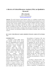 A Review of Critical Discourse Analysis (CDA) on Qualitative Research Rika Armayanti Dept. of English, FKIP University of Lancang Kuning ikaarmayantiika@gmail.com Abstract: This article discusses critical discourse theory as a qualitative research theory. Analytical frameworks include analysis of texts, communication and social practices in local, corporate and social levels. It has the goal of expressing and engaging in politics to discuss or deal with certain research methods, statements or values. It refers to the need to explain, understand, analyze, and criticize social life that reflects in text using critical discourse analysis. According to Lake (1996), “the authors use texts to understand their world and at the same time, the article admits to creating actions and social relationships in everyday life, while text positions and individual buildings provide different meanings, ideas, and world versions”. Key words: Critical Discourse Analysis; Qualitative Research; Analysis of Text; Human Text INTRODUCTION According to Anyon (2009), “theory and academic research divides old-age theory by demonstrating how researchers use critical theory to assess appropriate experimental research techniques and demonstrate analytic, critical and sometimes liberal data storage and definition”. Dressman (2008) said that is the theory encompasses thinking methods about academic issues and inhibits creativity among researchers, policymakers, and teachers. According to Anyon (2009), “there are five types of arguments used in the theory of academic research. 1). Analogous arguments (however, argue that the success of natural sciences in the use of theory is a good example of academic research, but that theory should be relatively useful when we move from one subject to another); 2) Reconciliation of Experience (The most important way to think about the role of theory is to directly override the problem of identifying the need for theory); 3) Identification of Complexity (appearing on the surface, as in the simplest case of experimental investigation, to prove complex in a deeper sense). 4) Deweyan Problem solvent (trial is an unspecified transformation that is subject to a problem determined and integrated by early problem solving); and 5) Bear Experiment Minorities (There are no devices for recording and generalization of theory or theory). According to Maxwell (2010), “lies, Analysis, or interpretation theory is free.” Be aware that the problem is about the theory of one being used and whether it is critical or suspicious. To understand any academic phenomenon, the phenomenon needs to look at the larger socio-economic and political scenarios that are embedded and to find theories that connect there. Not only does it understand the study of individuals, situations, and studies, but also theories can be used to change them. To avoid citing the theory to support one's argument, it must be used to adapt the theory to one's study logic and to deepen one's research process. Formal learning and instructional techniques are inseparable. Learning theories further illustrate how learning occurs, but does not describe specific methods and activities to follow the objective learning results. For example, learning theories can explain the age that students can learn breaks, but instructional theories provide guidelines on how to implement break instruction. CDA: Primary Interest in Qualitative Research According to Van Dijk (2006), “CDA is main interested and motivated by the idea of comprehensions social issues. According to Hamuddin (2012) in Sahat (2018) ”The term “discourse” is a complex and mammoth-like interpretation. Many previous studies mention the term discourse as very ambiguous since its introduction to modern science and the various broad interpretations of discourse.” Wodak and Meyer (2009) argue that critical discourse analysis emphasizes the need for interdisciplinary work to gain a sense of how to create knowledge in the organization of social organizations and how to spread knowledge. According to Rogers et.al (2005), “critical theories are usually about the issues of power and justice, and to create, reproduce, or transform social systems such as the economy, race, class, gender, religion, education, and sexual orientation.” Human subjects use texts to understand their world and create different meanings, concepts, and editions of the world, at the same time, at the same time as the workers' lives, and in the form of individuals (Lake:1996). The analysis includes analysis of texts, communication and social practices at local, organizational and social levels. CDA deals with the long-term analysis of the basic causes and the effects of problems. Therefore, it requires an account of detailed relationships between text, discussion, society, and culture. Teaching and learning policies can better understand the language and type of texts by looking at community social issues. According to McGregor (2010), CDA dare us to move our speech to an abstract view to see our words in past particular, public and political situation. Therefore definitive discourse analysis is realized and expanded, and instances of social communication take a particular linguistic form (Blommaert & Bulcaen:2000). CDA is intended to systematically explore occasional opacity and determination between discord practices, events and texts, and broader social and cultural structures, relationships, and processes (Locke: 2004). Investigate how such practices, events, and texts arise and develop theories of power and theories of power formed as a theory. It is aimed at disclosing motivation and politics that are subject to a specific research method, statement, or value or argument”. The texts are moments of inter-subjectivity, that is, social and conflicting relationships between human subjects, such as writers and readers, speakers, and listeners, because their motives are self-evident or unrecognized in