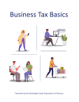 Presented by the Washington State Department of Revenue Contents Business tax basics . . . . . . . . . . . . . . . . . . .1 Personal property tax . . . . . . . . . . . . . . . . . 18 Rights and responsibilities . . . . . . . . . . . . . . 2 Unclaimed property . . . . . . . . . . . . . . . . . . 19 Registering with the Department of Revenue . . 3 Tax return payment and reporting . . . . . . . . 20 Business and occupation (B&O) tax . . . . . . . . .4 Small Business B&O Tax Credit . . . . . . . . . . . . . 4 Retailing . . . . . . . . . . . . . . . . . . . . . . . . . . . 4 Wholesaling . . . . . . . . . . . . . . . . . . . . . . . . . 5 Reseller permit . . . . . . . . . . . . . . . . . . . . . . . 5 Manufacturing . . . . . . . . . . . . . . . . . . . . . . . 6 Service and other activities . . . . . . . . . . . . . . . 6 Paying your taxes . . . . . . . . . . . . . . . . . . . . 20 Due dates . . . . . . . . . . . . . . . . . . . . . . . . . 20 Late penalties . . . . . . . . . . . . . . . . . . . . . . . 20 Delinquent tax collection process . . . . . . . . . . 20 Reporting no business activity . . . . . . . . . . . . 20 Electronic filing (My DOR) . . . . . . . . . . . . . . . 22 Setting up your My DOR access . . . . . . . . . . . 22 Correcting a previously filed return . . . . . . . . . 23 Retail sales tax . . . . . . . . . . . . . . . . . . . . . .7 Will I be audited? . . . . . . . . . . . . . . . . . . . . . 24 Definition of retail sales . . . . . . . . . . . . . . . . . 7 What to expect during an audit . . . . . . . . . . . 24 Collecting and reporting sales tax . . . . . . . . . . . 7 Appeals process . . . . . . . . . . . . . . . . . . . . . 24 Sales tax rates . . . . . . . . . . . . . . . . . . . . . . . . 8 Special sales taxes . . . . . . . . . . . . . . . . . . . . . 8 Local coding of retail sales . . . . . . . . . . . . . . . . 9 Rental of tangible goods . . . . . . . . . . . . . . . . . 9 Tools to determine sales tax rates and codes . . . . 9 Deductions . . . . . . . . . . . . . . . . . . . . . . . 10 Use tax . . . . . . . . . . . . . . . . . . . . . . . . . . 12 Taxable amount and rates . . . . . . . . . . . . . . . 12 Property used in a trade or business . . . . . . . . 12 Use tax exemption . . . . . . . . . . . . . . . . . . . . 13 Use tax credit . . . . . . . . . . . . . . . . . . . . . . . 13 Report and pay use tax . . . . . . . . . . . . . . . . . 13 Public utility tax . . . . . . . . . . . . . . . . . . . . 14 Special taxes and fees . . . . . . . . . . . . . . . . 16 Services and resources . . . . . . . . . . . . . . . . 25 Other agencies to contact . . . . . . . . . . . . . 26 Tax incentives . . . . . . . . . . . . . . . . . . . . . . 27 Incentive programs: . . . . . . . . . . . . . . . . . . . 27 Due dates . . . . . . . . . . . . . . . . . . . . . . . . 28 Appendices . . . . . . . . . . . . . . . . . . . . . . . 29 A | Combined Excise Tax Return . . . . . . . . . . . 30 B | MATC Manufacturing Calculation Worksheet . 34 C | Sample reseller permit . . . . . . . . . . . . . . . 35 D | Confidential Tax Information Authorization . . 36 E | Common business activities table . . . . . . . . 37 This basic tax guide is created to help you understand Revenue collected (FY20) Washington’s tax structure. It’s intended to provide an overview ofState the taxes that(inapply to various business revenues billions): Retail sales and use tax $12.1 activities in Washington. Business and occupation $4.6 Other local revenues $0.4 Taxrevenue revenuecollected collected and what provides Tax and what it it provides $12.1 b — State retail sales and use tax $5.4 b — Local retail sales and use tax $4.6 b — Business and occupation tax $3.9 b — Other state taxes and fees $3.6 b — State share property tax $0.4 b — Other local taxes Washington doesState not have a corporate property tax levy or personal $3.6 state taxes income tax. MostOther Washington businesses are $3.9 subject Local revenues: to three major state taxes, all administered or Retail sales and use tax overseen by the Department of Revenue: $5.4 Business tax basics Business tax basics Revenue at a Glance Totaland collections 1. Business occupation tax (B&O). $30.0 2. Retail Reporting/active sales tax. businesses $30 Active reporting (as of 7/1/20): Monthly 157,711 Other taxes may apply to your business, such as: Quarterly 208,897 Annual 227,465 • Public utility tax. Total 594,073 • Specialty taxes. Audits 3,841 • County and city taxes. Voluntary compliance 98.2% 3. Use tax. Staffing FTEs Reminder BILLION 1,197.9 Human services State tax laws change regularly. The information Efficiencies provided is current at the time of the publication. Cost per $100 collected (FY20) 66¢ In the past 20 years, we’ve increased: Questions Revenue collected 135.1% Specialists are available to answer your tax questions Registered businesses 19.7% Monday throughFTEs Friday from 8 a.m. to 5 p.m. 25.5% 10.2 million Visits to dor.wa.gov 2.7 million (in millions): Filed returns Live Chat: Go to dor.wa.gov, click Contact then click FY20 $175.3 FY21 $186.6 on the Live Chat icon. $361.9 336,188 Resources Go to dor.wa.gov, then click Get a Form or Publication. • Industry-specific tax guides. • Special notices. • Tax topic articles. More services Health care Public safety Customer service Agency budget 2019-2021 biennial Call: 360-705-6705 Total Natural resources Education LICENSE $ 95% Returns filed online 22,541 Live chats $74 million Phone calls Unclaimed property returned to owners 359,000 172,751 64 1.3 million Business license applications and renewals Business tax workshops (732 attendees) Unclaimed property refunds processed Visits to ClaimYourCash.org Information on other services and publications can be found at the back of this publication or on our website at dor.wa.gov. dor.wa.gov | 360-705-6705 1 Rights and responsibilities Rights and responsibilities Your rights as a taxpayer include: • Written explanations when tax assessments