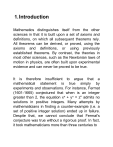 1. Introduction Mathematics distinguishes itself from the other sciences in that it is built upon a set of axioms and definitions, on which all subsequent theorems rely. All theorems can be derived, or proved, using the axioms and definitions, or using previously established theorems. By contrast, the theories in most other sciences, such as the Newtonian laws of motion in physics, are often built upon experimental evidence and can never be proved to be true. It is therefore insufficient to argue that a mathematical statement is true simply by experiments and observations. For instance, Fermat (1601-1665) conjectured that when is an integer greater than 2, the equation xn + yn = z" admits no solutions in positive integers. Many attempts by mathematicians in finding a counter-example (i.e. a set of positive integer solution) ended up in failure. Despite that, we cannot conclude that Fermat's conjecture was true without a rigorous proof. In fact, it took mathematicians more than three centuries to find the proof, which was finally. completed by the English mathematician Andrew Wiles in 1994, To conclude or even to conjecture that a statement is true merely by experimental evidence can be dangerous. For instance, one might conjecture that n2-n+41 is prime for all natural numbers n. One can easily verify this: when n=1, n2-n+41=41 is prime; when = 2, n2-n+41=43 is prime, and so on. Even if one continues the experiment until n=10, or even n=20 one would not be able to find a counterexample. However, it is easy to see that the statement is wrong, for when = 41 the expression is equal to 412 which definitely is not prime. While experimental evidence is insufficient to guarantee the truthfulness of a statement, it is often not possible to verify the statement for all possible cases either. For instance, one might conjecture that 1+3+5+ +(2n1)=n2 for all natural numbers n. Of course one easily verifies that the statement is true for the first few (even the first few hundreds or even thousands of cases if one bothers to do so) values of n. Yet we cannot conclude that the statement is true. Maybe it will fail at some unattempted values, who knows? It is not possible to verify the statement for all possible values of n since there are infinitely many of them. So how can we verify the statement? A powerful tool is mathematical induction. 2. The Basic Principle An analogy of the principle of mathematical induction is the game of dominoes. Suppose the dominoes are lined up properly, so that when one falls, the successive one will also fall. Now by pushing the first domino, the second will fall; when the second falls, the third will fall; and so on. We can see that all dominoes will ultimately fall. So the basic principle of mathematical induction is as follows. To prove that a statement holds for all positive integers n, we first verify that it holds for n=1 and then we prove that if it holds for a certain natural number k, it also holds for k+1 . This is given in the following. Theorem 2.1. (Principle of Mathematical Induction) Let S(n) denote a statement involving a variable n. Suppose (1) S(1) is true; (2) if S(k) is true for some positive integer k, then S(k+1) is also true. Then S(n) is true for all positive integers n. Example 2.1. Prove that 1+3+5+…… +(2n-1)=n2 for all natural numbers n. Solution. We shall prove the statement using mathematical induction. Clearly, the statement holds when n=1 since 1=12. Suppose the statement holds for some positive integer k. That is, 1+3+5+……+(2k-1)=k2 Consider the case n=k+1. By the above assumption (which we shall call the induction hypothesis), we have 1+3+5+………+[2(k+1)- 1]=[1+3+5+…….+(2k1)]+(2k+1) =k2+(2k+1) =(k+1)2 That is, the statement holds for n=k+1 provided that it holds for n=k. By the principle of mathematical induction, we conclude that 1+3+5++ (2n-1)=n2 for all natural numbers n. principle of mathematical induction can be used to prove a wide The range of statements involving variables that take discrete values. Some typical examples are shown below. Example 2.2. Prove that 23"-1 is divisible by 11 for all positive integers n. Solution. Clearly, 23-1-22 is divisible by 11. Suppose 11|23k-1 for some positive integer k. Then 23k+1-1=23.23k-1=11.2.23k+(23k-1) which is also divisible by 11. It follows that 23"-1 is divisible by 11 for all positive integers n. Example 2.3. Let x>-1 be a real number. Prove that (1+x)" ≥1+nx for all natural numbers n. Solution. Clearly, the inequality holds for n=1 since (1+x)1=1+1(x) Suppose (1+x)k ≥ 1+kx for some positive integer k. For the case n=k+1 we have (1+x)k+1=(1+x)k(1+x) ≥ (1+kx)(1+x) =1+(k+1)x+kx2 ≥1+(k+1)x Hence, if the inequality holds for the case nk, it also holds for the case n=k+1 . It follows that (1+x)k ≥1+nx for all natural numbers n. (Question: Where in the proof did we make use of the fact that x>-1?) While we have illustrated how mathematical induction can be used to prove certain statements, it should be remarked that many of these statements can actually be proved without using mathematical induction. There are always ingenious ways to prove those statements. The use of mathematical induction, however, provides an easy and mechanical (though sometimes tedious) way of proving a wide range of statements. 3. Variations of the Basic Principle There are many variations to the principle of mathematical induction. The ultimate principle is the same, as we have illustrated with the example of dominoes, but these variations allow us to prove a much wider range of statements. Theorem 3.1. (Principle of Mathematical Induction, Variation 1) Let S(n) denote a statement involving a variable n. Suppose (1) S(k0) is true for some positive integer k0; (2) if S(k) is true for some positive integer k≥k0, then S(k+1) is also true.. Then S(n) is true for all positive integers n ≥k0 In some cases a statement involving a variable a holds when n is 'large enough', but does not hold when