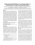 Understanding Self-Reflection: How People Reflect on Personal Data Through Visual Data Exploration Eun Kyoung Choe1, Bongshin Lee2, Haining Zhu1, Nathalie Henry Riche2, Dominikus Baur3 1 Pennsylvania State University, University Park, PA, United States 2 Microsoft Research, Redmond, WA, United States 3Independent Researcher, Munich, Germany echoe@ist.psu.edu, bongshin@microsoft.com, hbz5037@psu.edu, nath@microsoft.com, do@minik.us ABSTRACT Rapid advancements in consumer technologies enable people to collect a wide range of personal data. With a proper means for people to ask questions and explore their data, longitudinal data feeds from multiple self-tracking tools pose great opportunities to foster deep self-reflection. However, most self-tracking tools lack support for self-reflection beyond providing simple feedback. Our overarching goal is to support self-trackers in reflecting on their data and gaining rich insights through visual data exploration. As a first step toward the goal, we built a web-based application called Visualized Self, and conducted an in-lab think-aloud study (N = 11) to examine how people reflect on their personal data and what types of insights they gain throughout the reflection. We discuss lessons learned from studying with Visualized Self, and suggest directions for designing visual data exploration tools for fostering self-reflection. Author Keywords Personal informatics; visualization; self-reflection; visualization insights; Quantified Self; self-tracking; health. ACM Classification Keywords H.5.m. Information interfaces and presentation (e.g., HCI): User Interfaces. INTRODUCTION People are increasingly tracking personal data using everevolving wearable sensors and mobile applications. People employ self-tracking for a variety of reasons—for example, to set and achieve goals, to document activities, or to identify relationships among different factors [36]. With rapid advancements in technology, self-tracking has gained ground beyond enthusiastic Quantified-Selfers (Q-Selfers) [33]. Nowadays, people can easily collect large amounts of personal data using commercial trackers and mobile apps. Although these tools are good for collecting personal data, Paste the appropriate copyright/license statement here. ACM now supports three different publication options: • ACM copyright: ACM holds the copyright on the work. This is the historical approach. • License: The author(s) retain copyright, but ACM receives an exclusive publication license. • Open Access: The author(s) wish to pay for the work to be open access. The additional fee must be paid to ACM. This text field is large enough to hold the appropriate release statement assuming it is single-spaced in Times New Roman 8-point font. Please do not change or modify the size of this text box. Each submission will be assigned a DOI string to be included here. they usually provide limited support for fostering selfreflection and drawing personal insights. Studies show that most people, including Q-Selfers, fail to fully leverage personal data [9,12,24,27,28,36]. For instance, common reasons for people to abandon their devices include difficulty in deciding what to do with the data and disappointment with the level of information the devices provide [27]. Moreover, it is challenging for lay people to construct appropriate visualizations, translate questions into data attributes, choose visual mappings, and interpret the visualizations [21,36]. Fawcett argued that data exploration and analytics capabilities for personal data analysis “remain surprisingly primitive,” leaving “the analytical heavy lifting to the end user” [15, p 251]. Although we cannot expect self-trackers to act as data scientists [36], visual data exploration (or data exploration with visualizations) is a powerful way to help people reveal meaningful insights about themselves and to facilitate selfreflection [7,39]. Our ultimate goal is to support selftrackers in reflecting on the data they gathered and gaining rich insights through visual data exploration. As a first step, we set out to answer the following two research questions in the context of people interacting with their personal data using overview and timeline visualizations: RQ1: How do people reflect on their self-tracking data? RQ2: What insights do people gain from visual data exploration? RQ1 focuses on the “process” of self-reflection whereas RQ2 focuses on the “outcomes” of self-reflection, which we call “personal insights.” For the purpose of this work, we adopt Choe et al.’s definition of data-driven insight (“an individual observation about the data accompanied by visual evidence” [8]) when we refer to “personal insight.” We also limit the insights to the ones directly drawn from data. To answer our research questions, we aimed at gathering situated feedback based on people’s experience with their own data. We therefore built a web-based application called Visualized Self (Figure 1), which supports people to integrate personal data from multiple personal informatics systems, explore the data with timeline visualizations, and perform temporal comparisons. In a think-aloud lab study (N = 11), we observed that Visualized Self helped participants identify many types of personal insights. We also identified gaps in our design, from which we drew opportu- nities for the design of visual data exploration platforms for self-trackers. The key contributions of this paper are: • An understanding of how self-trackers explore personal data with timeline visualizations and temporal comparisons based on situated feedback • Types of personal insights self-trackers identify from visual data exploration • Opportunities and design implications for visual data exploration platforms to promote self-reflection. RELATED WORK Self-Reflection and Personal Insights Recently, the HCI community has been embracing the concept of reflection as an important value in