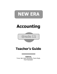 NEW ERA Accounting Teacher’s Guide Authors: Trevor Hall, Diane Woodroffe, Pravin Singh, Hanif Aboobaker PREFACE COPYRIGHT This publication includes images from Corel Print House ™ Magic 4 which are protected by the copyright laws of the USA, Canada and elsewhere. Used under licence. Copyright 2013 by New Era Publishers New Era Publishers Flamingo Industrial Park Unit 6, 83-91 Intersite Ave Umgeni Business Park Durban 4001 PO Box 51227, Musgrave, 4062 Tel Fax Email Orders : : : : (031) 263 2201 (031) 263 2202 newgen@netactive.co.za shamnewgen@netactive.co.za All rights reserved. No part of this publication may be copied or reproduced or transmitted in any form or by any means, electronic or mechanical, including photocopying, recording or any information storage and retrieval system without the written permission of New Era Publishers. ISBN: 978-1-77585-014-4 CONTENTS INTRODUCTION, WEEKLY PLANNER, ASSESSMENT PROGRAMME Page Contents (i) Introduction (iv) Weekly planner (viii) Assessment Programme (xiii) Module 1: COMPANIES: Introduction; Basic concepts & Unique transactions Task Page 1.1, 1.2 2 1.3 3 1.4 4 1.5 5 1.6 6 1.7 – 1.9 7 1.10 8 1.11 9 1.12 10 1.13 12 1.14 13 1.15 15 1.16 16 1.17 17 1.18 19 1.19 20 1.20, 1.21 21 Module 2: COMPANIES: GAAP, Year-end Procedures & Final accounts Task Page 2.1, 2.2 24 2.3 25 2.4 27 2.5 37 New Era Accounting: Grade 12 Module 3: COMPANIES: Financial reporting Task 3.1 – 3.4 3.5 3.6 3.7 3.8 3.9 3.10 3.11 3.12 3.13 3.14 3.15 3.16 3.17 3.18 3.19 3.20 3.21, 3.22 3.23 - 3.25 3.26 - 3.28 3.29 - 3.32 3.33, 3.34 3.35 3.36 3.37 3.38 - 3.40 3.41 3.42 3.43 3.44 3.45 3.46 3.47 3.48 3.49 3.50 3.51 3.52 3.53 Page 42 43 44 45 46 49 52 55 58 61 65 68 71 74 77 80 81 82 83 84 85 86 87 88 89 90 91 92 94 95 96 98 99 101 102 104 106 107 108 (i) Module 4: COMPANIES: Analysis & interpretation of financial statements Task Page 4.1, 4.2 110 4.3 111 4.4 112 4.5 113 4.6 114 4.7 - 4.10 115 4.11, 4.12 116 4.13, 4.14 117 4.15, 4.16 118 4.17, 4.18 119 4.19, 4.20 120 4.21 121 4.22 122 4.23 123 4.24 124 4.25 - 4.27 125 4.28 126 4.29 128 4.30 131 4.31 133 4.32 134 4.33 136 4.34 140 4.35 145 Module 5: COMPANIES: Audit reports and published annual reports Task Page 5.1, 5.2 147 5.3 148 5.4 149 5.5 153 Teacher’s Guide Module 6: ETHICS & CORPORATE GOVERNANCE & THE ROLE OF PROFESSIONAL BODIES Task Page 6.1 156 6.2 157 6.3 158 6.4, 6.5 159 6.6 160 6.7 161 6.8, 6.9 162 6.10 163 6.11, 6.12 164 6.13, 6.14 165 6.15, 6.16 166 6.17 169 Module 7: FIXED ASSETS Task 7.1 7.2 7.3 7.4, 7.5 7.6, 7.7 7.8 7.9 7.10 7.11 7.12 7.13 7.14, 7.15 Page 175 176 177 178 182 183 184 185 186 187 188 189 Module 9: INTERNAL CONTROL & INTERNAL AUDIT Task Page 9.1 202 9.2 203 9.3, 9.4 204 9.5, 9.6 205 9.7 207 9.8 208 9.9 - 9.11 209 9.12 210 9.13, 9.14 211 Module 10: INVENTORY SYSTEMS Task Page 10.1 213 10.2 215 10.3 216 10.4 217 10.5 218 10.6 219 10.7 220 10.8 221 10.9 222 10.10, 10.11 223 10.12 224 10.13 226 10.14 227 10.15 228 10.16 229 10.17 231 10.18 232 Module 8: CLOSE CORPORATIONS Task Page 8.1, 8.2 191 8.3 - 8.5 192 8.6, 8.7 193 8.8 195 8.9 198 8.10 201 New Era Accounting: Grade 12 (ii) Module 11: RECONCILIATIONS Task Page 11.1 234 11.2 235 11.3, 11.4 236 11.5 - 11.7 237 11.8 238 11.9 239 11.10, 11.11 241 11.12 242 11.13, 11.14 243 11.15, 11.16 244 11.17 245 11.18 247 11.19 248 11.20, 11.21 251 11.22, 11.23 252 11.24 253 11.25 255 11.26 256 11.27 257 11.28, 11.29 258 11.30 259 11.31 260 11.32 261 11.33 263 Module 12: VALUE ADDED TAX (VAT) Task Page 12.1 265 12.2, 12.3 266 12.4 267 12.5 – 12.7 268 12.8, 12.9 269 12.10 270 12.11, 12.12 273 12.13 274 12.14 276 Teacher’s Guide Module 13: COST ACCOUNTING Task Page 13.1 278 13.2 279 13.3 280 13.4 282 13.5 283 13.6 285 13.7, 13.8 286 13.9 287 13.10 288 13.11 289 13.12, 13.13 290 13.14 291 13.15 292 13.16 293 13.17 295 13.18 297 13.19, 13.20 299 Module 14: BUDGETING Task 14.1 14.2 14.3 14.4 14.5 14.6 14.7 14.8 14.9 14.10 14.11, 14.12 14.13 Page 301 302 303 304 305 306 307 308 310 312 314 315 Module 15: REVISION Task 15.1 15.2 15.3 15.4, 15.5 15.6 15.7 15.8 15.9 15.10 15.11 15.12 15.13, 15.14 15.15 15.16, 15.17 15.18 15.19 15.20 15.21 15.22 15.23 15.24, 15.25 15.26 15.27 15.28 15.29 15.30 15.31 15.32, 15.33 15.34 15.35 15.36 15.37 15.38 15.39 15.40 15.41 15.42 15.43 15.44 Page 317 319 321 322 324 325 326 329 330 333 334 335 336 338 339 341 342 343 344 346 340 350 351 352 353 354 356 357 358 359 360 362 363 365 366 368 369 373 375 Module 16: EXAMINATION PAPERS Paper Page Mid-year paper 376 Year-end paper 383 New Era Accounting: Grade 12 (iii) Teacher’s Guide INTRODUCTION The new Accounting curriculum for Grade 12 is a most welcome innovation because it remains relevant to the needs of learners in providing them with the necessary skills for success in modern times. The balance of topics covering financial accounting, managerial accounting, auditing, corporate governance and business ethics will serve learners well, both as a general life skill in any chosen career, or specifically in preparation towards further study and a career in one of the many fields of accounting. The changes to the content in the curriculum result from the new Companies Act, No. 71 of 2008. Companies were studied under the previous curriculum but new developments in company law have brought in the following changes to the Grade 12 curriculum: • • • • • The curriculum and the law no longer refer to the par value of shares. Par value has now become irrelevant to companies as it gives no indication of the value of a share other than on the day when the company was first formed. Shares are now recorded at issue price, i.e. the price that the market is prepared to pay for the share at any time. Consequently, the share premium account falls away. Companies can repurchase or ‘buy-back’ shares from shareholders. This involves calculating a weighted average price and making entries in the share capital and / or retained income account. This will not only have an effect on the ledger 