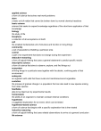 pplied science a a form of science that solves real-world problems atom a basic unit of matter that cannot be broken down by normal chemical reactions basic science science that seeks to expand knowledge regardless of the short-term application of that knowledge biology the study of life biosphere a collection of all ecosystems on Earth cell the smallest fundamental unit of structure and function in living things community a set of populations inhabiting a particular area control a part of an experiment that does not change during the experiment deductive reasoning a form of logical thinking that uses a general statement to predict specific results descriptive science a form of science that aims to observe, explore, and find things out ecosystem all living things in a particular area together with the abiotic, nonliving parts of that environment eukaryote an organism with cells that have nuclei and membrane-bound organelles evolution the process of gradual change in a population that can also lead to new species arising from older species falsifiable able to be disproven by experimental results homeostasis the ability of an organism to maintain constant internal conditions hypothesis a suggested explanation for an event, which can be tested hypothesis-based science a form of science that begins with a specific explanation that is then tested inductive reasoning a form of logical thinking that uses related observations to arrive at a general conclusion life science field of science, such as biology, that studies living things a macromolecule a large molecule typically formed by the joining of smaller molecules molecule a chemical structure consisting of at least two atoms held together by a chemical bond natural science a field of science that studies the physical world, its phenomena, and processes organ a structure formed of tissues operating together to perform a common function organ system the higher level of organization that consists of functionally related organs organelle a membrane-bound compartment or sac within a cell organism an individual living entity peer-reviewed article a scientific report that is reviewed by a scientist’s colleagues before publication phylogenetic tree a diagram showing the evolutionary relationships among biological species based on similarities and differences in genetic or physical traits or both physical science a field of science, such as astronomy, physics, and chemistry, that studies nonliving matter population all individuals within a species living within a specific area prokaryote a unicellular organism that lacks a nucleus or any other membrane-bound organelle science knowledge that covers general truths or the operation of general laws, especially when acquired and tested by the scientific method scientific law a description, often in the form of a mathematical formula, for the behavior of some aspect of nature under certain specific conditions scientific method a method of research with defined steps that include experiments and careful observation scientific theory a thoroughly tested and confirmed explanation for observations or phenomena tissue a group of similar cells carrying out the same function ariable v a part of an experiment that can vary or change acid a substance that donates hydrogen ions and therefore lowers pH adhesion the attraction between water molecules and molecules of a different substance amino acid a monomer of a protein anion a negative ion formed by gaining electrons atomic number the number of protons in an atom base a substance that absorbs hydrogen ions and therefore raises pH buffer a solution that resists a change in pH by absorbing or releasing hydrogen or hydroxide ions carbohydrate a biological macromolecule in which the ratio of carbon to hydrogen to oxygen is 1:2:1; carbohydrates serve as energy sources and structural support in cells cation a positive ion formed by losing electrons cellulose a polysaccharide that makes up the cell walls of plants and provides structural support to the cell chemical bond an interaction between two or more of the same or different elements that results in the formation of molecules chitin a type of carbohydrate that forms the outer skeleton of arthropods, such as insects and crustaceans, and the cell walls of fungi cohesion the intermolecular forces between water molecules caused by the polar nature of water; creates surface tension covalent bond a type of strong bond between two or more of the same or different elements; forms when electrons are shared between elements denaturation the loss of shape in a protein as a result of changes in temperature, pH, or exposure to chemicals eoxyribonucleic acid (DNA) d a double-stranded polymer of nucleotides that carries the hereditary information of the cell disaccharide two sugar monomers that are linked together by a glycodsidic bond electron a negatively charged particle that resides outside of the nucleus in the electron orbital; lacks functional mass and has a charge of –1 electron transfer the movement of electrons from one element to another element one of 118 unique substances that cannot be broken down into smaller substances and retain the characteristic of that substance; each element has a specified number of protons and unique properties enzyme a catalyst in a biochemical reaction that is usually a complex or conjugated protein evaporation the release of water molecules from liquid water to form water vapor fat a lipid molecule composed of three fatty acids and a glycerol (triglyceride) that typically exists in a solid form at room temperature glycogen a storage carbohydrate in animals hormone a chemical signaling molecule, usually a protein or steroid, secreted by an endocrine gland or group of endocrine cells; acts to control or regulate specific physiological processes hydrogen bond a weak bond between partially positively charged hydrogen atoms and partially negatively charged elements or molecules hydrophilic 