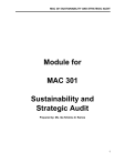 MAC 301 SUSTAINABILITY AND STRATEGIC AUDIT Module for MAC 301 Sustainability and Strategic Audit Prepared by: Ms. Ida Kristina D. Ramos 1 MAC 301 SUSTAINABILITY AND STRATEGIC AUDIT Module 1 THE EMERGENCE OF SUSTAINABLE STRATEGIC MANAGEMENT Week 1-2 Introduction The convergence of business and sustainability is sustainable management. It is the practice of a company's effect on the three bottom lines—people, earth, and profit—in order for all three to thrive in the future. Since it is constructive rather than reactive, sustainability management leads to a company's long-term survival. Investing in fair-trade goods, reducing packaging materials, and maintaining humane working conditions at supplier factories are only a few examples. Learning Objectives: Understand the benefits of sustainability and strategic audit Explain how globalization and environmental sustainability influence strategic management Understand the three bottom lines of sustainability management and its components Identify the causes of global sustainability issues Identify the pillars of sustainability WHAT IS SUSTAINABILITY? Sustainability entails fulfilling our own needs without jeopardizing future generations' ability to fulfill their own. We need social and economic capital in addition to natural resources. Environmentalism isn't the only aspect of sustainability. Concerns for social justice and sustainable growth are included in most concepts of sustainability. It's the act of living within the constraints of available physical, natural, and social resources in such a way that the living systems in which humans are embedded can survive indefinitely. Where does the term ‘sustainability’ come from? Although the philosophy of sustainability is a recent one, the movement as a -p has origins in social justice, conservationism, internationalism, and other long-standing movements. Many of these proposals had come together by the end of the twentieth century in the call for "sustainable growth." WHAT IS SUSTAINABILITY MANAGEMENT? Sustainable management is the intersection of business and sustainability. It is the practice of managing a firm’s impact on the three bottom lines—people, planet, and profit—so that all three can prosper in the future. Sustainable management supports a business’s long-term viability, because it’s preventative rather than reactive. It can take many forms including investing in fair-trade products, reducing packaging materials, and ensuring humane working conditions at supplier factories. 2 MAC 301 SUSTAINABILITY AND STRATEGIC AUDIT WHAT IS STRATEGIC AUDIT? It's an in-depth analysis to see whether a corporation is achieving its operational targets in the most effective way possible. It examines and decides the most suitable direction for the organization to step toward in order to achieve its goals by assessing different aspects of the business. “A strategic audit assesses your: Current business strategy How suitable it is for your business Whether your company is in position to execute the strategy” WHAT IS SUSTAINABILITY AUDIT? It's a guide for comparing the company's policies to the best practices for longterm sustainability. It takes generally recognized best practices and distills them into concrete programs for resource conservation, employee engagement, giving back, and more. Figure 1. Causes of Global Sustainability Issues 3 MAC 301 SUSTAINABILITY AND STRATEGIC AUDIT Figure 2. Pillars of Sustainability Figure 3. Pillars of Sustainability and its Functionalities Pillars of Sustainability and Its Functions Environmental Sustainability (Environmental Protection) Ecological integrity is maintained, all of earth’s environmental systems are kept in balance while natural resources within them are consumed by humans at a rate where they are able to replenish themselves. Adjust value chain to very low usage of all resources Select resources of sufficient supply Resources used should be processed with little energy and emissions 4 MAC 301 SUSTAINABILITY AND STRATEGIC AUDIT Avoid air and water pollution as much as possible Strive for closed loops and recovery Design materials and products for optimum recyclability The goal is the balance between consumption and regeneration of natural resources including resource recovery Figure 4. Pillars of Sustainability Figure 5. Environmental Functions 5 MAC 301 SUSTAINABILITY AND STRATEGIC AUDIT Economic Sustainability (Economic Prosperity) Human communities across the globe are able to maintain their independence and have access to the resources that they require, financial and other, to meet their needs. Economic systems are intact and activities are available to everyone, such as secure sources of livelihood. Social Sustainability (Social Responsibility) Universal human rights and basic necessities are attainable by all people, who have access to enough resources in order to keep their families and communities healthy and secure. Healthy communities have just leaders who ensure personal, labor and cultural rights are respected and all people are protected from discrimination. WHAT IS AN ECOLOGICAL FOOTPRINT? o Individual demand on nature is determined. o Resource consumption and emissions are quantified. o The area needed for regeneration is calculated based on individual use. o As a result, individuals or nations are assigned a productive area. This creates the ecological footprint. o Bio capacity describes the biologically productive area of a country or region. o The ratio of required to existing surface is the benchmark for sustainability. o Results of the ratio greater than 1 denote land use. Sustainability Strategy Figure 6. Measures of Practical Implementation of Strategy 6 MAC 301 SUSTAINABILITY AND STRATEGIC AUDIT Figure 7. Sustainability Balanced Scorecard Figure 8. Strategic Management Balanced Scorecard 7 MAC 301 SUSTAINABILITY AND STRATEGIC AUDIT Figure 9. Strategy Selection Processes and Structures (Process Management –