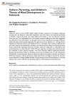 725404 research-article2017 JCCXXX10.1177/0022022117725404Journal of Cross-Cultural PsychologyKuntoro et al. Article Culture, Parenting, and Children’s Theory of Mind Development in Indonesia Journal of Cross-Cultural Psychology 2017, Vol. 48(9) 1389­–1409 © The Author(s) 2017 Reprints and permissions: sagepub.com/journalsPermissions.nav https://doi.org/10.1177/0022022117725404 DOI: 10.1177/0022022117725404 journals.sagepub.com/home/jcc Ike Anggraika Kuntoro1, Candida C. Peterson2, and Virginia Slaughter2 Abstract Children’s theory of mind (ToM) unfolds reliably through a sequence of conceptual milestones including, but not limited to, false belief. Sequences vary with culture, one observed previously in Western cultures (Australia, the United States) and another in two non-Western cultures, China and Iran. Two explanations for cross-cultural sequence differences have been suggested: (a) collectivism versus individualism or (b) authoritarian versus authoritative parenting. However, neither has been directly tested empirically. Our goal was to do so. Children (n = 122, aged 4-6) in Indonesia (a collectivist culture) took Wellman and Liu’s ToM Scale. Their mothers completed two self-report measures evaluating their attitudes to (a) collectivism/individualism and (b) authoritarian versus authoritative parenting. Indonesian mothers preferred collectivism to individualism and authoritativeness to authoritarianism. Child ToM was negatively correlated with authoritarianism but unrelated to other parental attitudes. ToM Scale sequences differed significantly between Javanese and Sundanese children in Indonesia and by city of residence but not with collectivism/ individualism or parenting style. Javanese children (primarily from Jakarta) matched the Western ToM Scale sequence, whereas Sundanese children (primarily from Bogor) matched the Chinese/ Iranian sequence. Findings highlight benefits of going beyond broad characterizations to directly examine how culture, ethnicity, and parenting relate to ToM sequences and development. Keywords social cognition, developmental: child/adolescent, theory of mind, parenting, family/child rearing The child’s acquisition of a theory of mind (ToM) confers an understanding of human behavior as the product of subjective states of mind such as feelings, desires, and beliefs (Wellman, 2014). Given ToM’s importance as “one of the quintessential abilities that makes us human” (BaronCohen, 2001, p. 174), considerable research over several decades has explored its acquisition both within and across cultures. Using the standard false belief test, a widely used “litmus” ToM indicator (Wellman, Cross, & Watson, 2001), a majority of typically developing children in many cultures make the transition into consistent false belief test success by age 5 or 6 (Callaghan 1University of Indonesia, Depok, Indonesia 2University of Queensland, Brisbane, Australia Corresponding Author: Candida C. Peterson, Professor, School of Psychology, University of Queensland, Brisbane, “Quensland” 4072, Australia. Email: candi@psy.uq.edu.au 1390 Journal of Cross-Cultural Psychology 48(9) et al., 2005; Slaughter & Perez-Zapata, 2014) but there are exceptions (e.g., De Gracia, de Rosnay, & Peterson, 2016; Mayer & Trauble, 2012). Theoretical debates about the maturational versus sociocultural underpinnings of this ToM transition are illuminated by cross-cultural research (e.g., Avis & Harris, 1991; Callaghan et al., 2005; Shahaeian, Peterson, Slaughter, & Wellman, 2011; Wellman, 2014) but the available evidence to date is too limited and inconsistent to provide a convincing answer to the question of whether ToM’s developmental timetable is culturally universal (as predicted by biological maturation theories) versus culturally variable (as expected if social and cultural experiences play a role). One reason for this uncertainty is methodological. Many past cross-cultural ToM studies have focused exclusively on false belief as the ToM indicator. Yet, there is “danger in allowing a single task to become a marker for complex development” (Astington, 2001, p. 687), and recent evidence suggests false belief mastery is just one milestone in a broader sequence of ToM-based conceptual developments, extending from infancy through late childhood and encompassing concepts such as emotion, intention, and desire understanding as well as true and false belief. To capture this conceptual progression, Wellman and Liu (2004) introduced a ToM Scale that identifies a statistically reliable sequence of conceptual developments obeying the properties of a Guttman scale and identifying a series of conceptual developments that lead up to, and beyond, false belief. Applied cross-culturally, the ToM Scale therefore allows for a more nuanced and comprehensive testing of hypotheses about ToM development and culture than can be achieved using false belief tests alone. A key question concerns cultural variations in the order of mastery of successive ToM milestones. In theory, culture might shape not just the timing of false belief mastery but also the entire developmental process leading up to and beyond it. That is, cultures may vary in the developmental sequence through which various ToM components are acquired. Empirically, this was shown in Wellman, Fang, Liu, Zhu, and Liu’s (2006) comparison of Chinese with AngloWestern preschoolers on a developmental five-step ToM Scale (Wellman & Liu, 2004). Although overall rates of ToM progress were cross-culturally equivalent, sequential ordering of two of the scale steps differed. Anglo-Western children in the United States and Australia mastered the “diverse belief” (DB) concept (different people can have different opinions about something) ahead of the “knowledge access” (KA) concept (seeing leads to knowing). Yet, KA consistently preceded DB for Chinese preschoolers. As detailed below, a few other studies have also found this cultural variat
