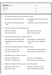 Worksheets Name Total questions: Class Worksheet time: Name: Date 1. The chef cooked a delicious meal. (Change to Passive) a)A delicious meal cooks by the chef. b)A delicious meal has been cooked by the chef. c)A delicious meal was cooked by the chef. d)A delicious meal is cooked by the chef. 2. The letter is written by her. (Change to Active) a)She wrote the letter. b)She has written the letter. c)She writes the letter. d)She is writing the letter. 3. They will complete the project. (Change to Passive) a)The project was completed by them. b)The project is completed by them. c)The project has been completed by them. d)The project will be completed by them. 4. The thief was caught by the police. ( Change to Active) a)The police catch the thief. b)The police were catching the thief. c)The police caught the thief. d)The police have caught the thief. 5. She helps the poor. (Change to Passive) a)The poor is helped by her. b)The poor are helped by her. c)The poor was helped by her. d)The poor has been helped by her. 6. Change the sentence into passive voice: 'She is writing a letter.' a)A letter was written by her. b)A letter is being written by her. c)She writes a letter. d)She is being written by a letter. 7. Identify the active voice form of the sentence: 'The homework was completed by John.' a)John completes the homework. b)John completed the homework. c)John was completing the homework. d)The homework is completed by John. 8. Convert to passive voice: 'They will finish the project by tomorrow.' a)The project will have been finished by tomorrow. b)The project will be finished by tomorrow. c)The project is going to finish tomorrow. d)The project will be finished by them tomorrow. 9.Which is the correct passive form of: 'He gave her a gift.' a)She was given a gift by him. b)He gave her a gift. c)A gift was given to her by him. d)A gift is being given by him to her. 10. Change the sentence to active voice: 'The cake was baked by Maria.' a)Maria baked the cake.b)The cake bakes Maria. c)Maria is baking the cake.d)Maria bakes the cake. 11. For the following sentence choose the option that best represents the same sentence with the voice changed. Did they buy you a car? a)Were you brought a car by them? b)Was a car bought by them? c)Were you bought a car by them? d)Was a car bought by you for them? 12. Change to passive voice: 'Who wrote this book?' a)By whom the book is written? b)Whose book was written by whom? c)Who was this book written by? d)By whom was this book written? 13. Identify the active voice form of: 'By whom was the meeting arranged?' a)By whom is the meeting arranged? b)Who arranged the meeting? c)By whom was the meeting arranging?d)Who arranges the meeting? 14.Which is the correct passive form of: 'Did they complete the project on time?' a)Was the project being completed by them on time? b)Did they complete the project on time? c)Was the project completed on time? d)Was the project completed by them on time? 15. Change to passive voice: Has anybody answered your question? a)Have you answered your question? b)Your question has been answered? c)Anybody has answered your question? d)Has your question been answered? 16. He said, "I am busy now." a)He said that he is busy then. b)He said that he is busy now. c)He said that he was busy then. d)He said that he was busy now. 17. She said, "I like ice cream." a)She said that she likes ice cream. b)She said that she like ice cream. c)She said that she is liking ice cream. d)She said that she liked ice cream. 18. He said, "I will call you tomorrow." a)He said that he would calling me tomorrow. b)He said that he would call me the next day. c)He said that he will call me tomorrow.d)He said that he would call me tomorrow. 19. John said, "I have finished my work." a)John said that he has finished his work. b)John said that he had finished his work. c)John said that he had finish his work. d)John said that he finish his work. 20. They said, "We are leaving now." a)They said that they were leaving then.b)They said that they are leaving now. c)They said that they are leaving then. d)They said that they were leaving now. 21. The teacher said, "You should study harder." a)The teacher said that I should studiedb)The teacher said that I should study harder. hardly. c)The teacher said that I should study harder. d)The teacher said that I should studies harder. 22. She said, "Where is my book?" a)She asked where her book is. b)She asked where is her book. c)She asked where her book was. d)She asked where was her book. 23. He said to me, "Can you help me?" a)He asked me if I can help him. b)He asked me if can I help him. c)He asked me if I could help him. d)He asked me can I help him. 24. They said, "Will we win the match?" a)They asked if they will win the match. b)They asked if they would won the match. c)They asked if they would win the match. d)They asked if we will win the match. 25. She said to me, "Please close the door." a)She told me to please close the door. b)She requested me to close the door. c)She said to me to close the door. d)She requested me that close the door. 26. The officer said, "Report to me as soon as possible." a)The officer said me to report to him as soon as possible. b)The officer requested me to report to him as soon as possible. c)The officer said to report to him as soon as possible. d)The officer ordered me to report to him as soon as possible. 27. He said, "Why didn’t she attend the meeting?" a)He asked why she didn’t attend the meeting. b)He asked why she didn’t attended the meeting. c)He asked why she hadn’t attended the meeting. d)He asked why hadn’t she attended the meeting. 28. She said, "If I were rich, I would travel the world." a)She said that if she was rich, she will travel the world. b)She said that if she was rich, she would travel the world. c)She said that if she were rich, she will travel the world. d)She said that if she were rich, she would travel the world. 29. They asked, "Who has taken our 