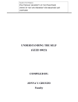 Republic of the Philippines POLYTECHNIC UNIVERSITY OF THE PHILIPPINES OFFICE OF THE VICE PRESIDENT FOR BRANCHES AND CAMPUSES SANTA ROSA CAMPUS City of Santa Rosa, Laguna UNDERSTANDING THE SELF (GEED 10023) COMPILED BY: JONNA V. GRUEZO Faculty TABLE OF CONTENTS UNIT 1 – DEFINING THE SELF Lesson 1 The Self from various Philosophical Perspective Lesson 2 The Self, Society and Culture Lesson 3 The Self as a Cognitive Construct Lesson 4 The Self in Western and Eastern Thoughts …… …… …… …… 2-4 4-5 5-6 6-7 …… …… …… …… …… 9-12 12-13 13-15 15-16 16-18 …… …… …… 20-21 21-22 22-24 UNIT II – UNPACKING THE SELF Lesson 5 The Physical and Sexual Self Lesson 6 The Material and Economic Self Lesson 7 The Spiritual and Religious Self Lesson 8 The Political Self Lesson 9 The Digital Self UNIT III – MANAGING AND CARING FOR THE SELF Lesson 10 Learning to be a Better Learner Lesson 11 Setting Goals for Success Lesson 12 Less Stress, More Care 1 UNIT 1 – DEFINING THE SELF OVERVIEW: “Believe in yourself! Have faith in your abilities! Without a humble but reasonable confidence in your own powers you cannot be successful or happy.” - Norman Vincent Peale For a more meaningful understanding of the self. Numerous studies have been conducted and various approaches have been developed from concepts about it. Philosophers from ancient to contemporary times sought to describe the essential qualities that compose a person’s uniqueness. Sociology sees the self as a product of social interaction, developed over time through social activities and experiences. Anthropology views self as a culturally shaped construct or ideas. Psychology sees the self as having characteristics or properties that can be used to describe it. Different culture and varying environment tend to create different perceptions of the self. And one of the most common distinctions between cultures and people is the Eastern vs. Western dichotomy. Eastern and Western civilizations have always sought to understand the self. Their views, however, stand on different perspective. LEARNING OUTCOMES: After successful completion of this unit, you should be able to: 1. Differentiate the views of self from the various philosophers across time and places. 2. Define society and culture. 3. Compare the self from the views of the eastern and western thoughts. COURSE MATERIALS: Lesson 1. THE SELF FROM VARIOUS PHILOSOPHICAL PERSPECTIVE Self is either the cognitive or the affective representation of the individual. Different perspective in the explanation of self are the following: 1. Socrates One of the very few individuals who shaped western thought. Socrates was known for his method of inquiry in testing an idea. Known as the Socratic Method, whereby an idea is tested by asking a series of questions to determine underlying beliefs and the extent of knowledge to guide the person toward better understanding. One of his most-quoted phrases is “the unexamined life is not worth living”. According to him, self knowledge or the examination of one’s self, as well as the question about how one ought to live one’s life, are very important concerns because only by knowing yourself can you hope to improve your life. He added self-knowledge would open your eyes to your true nature and the state of your inner being determines the quality of your life. Socrates believed that the goal of life is to be happy, the virtuous man is a happy man. 2. Plato Plato supported the idea that man is a dual nature of body and soul. He is best known for his “theory of forms” that asserted the physical world is not really the real world because the ultimate reality exists beyond the physical world. According to him, the soul is indeed the most divine aspect of the human being. He added that there are three components of the soul; 2 a. The rational soul (reasoning), forged by reason and intellect has to govern the affairs of the human person. b. The spirited soul (feeling), which is in charge of emotions should be kept at bay. c. The appetitive soul (sensual), in charge of base desires like eating, drinking, sleeping and having sex. 3. St. Augustine Also called St. Augustine of Hippo, one of the Latin Fathers of the Church, one of the Doctor of the Church and one of the most significant Christian thinkers. He adopted Plato’s view that the self is an immaterial but rational soul. Augustine agreed that man is of a bifurcated nature. He believed that the human being was both a soul and body. The body is bound to die on earth and the soul is to anticipate living eternally in a realm of spiritual bliss in communion with God. 4. Thomas Aquianas Adapting some ideas from Aristotle, Aquinas said that indeed, man is composed of two parts; • Matter – hyle in Greek, refers to the common stuff that makes up everything in the universe. • Form – morphe in Greek, refers to the essence of substance or thing. To Aquinas, what makes a human person a human person is his soul. The soul is what animates the body, it is what makes us human. 5. Rene Descartes Father of modern philosophy, conceived of the human person as having a body and a mind. The first thinker to emphasize the use of reason to describe, predict and understand natural phenomena based on observational and empirical evidence. He thought that the only thing that one cannot doubt is the existence of the self, a thing that thinks and therefore, that cannot be doubted. His famous line “cogito ergo sum”, “I think therefore I am”. The fact that one thinks should lead one to conclude without doubt that he exists. The self for Descartes is a combination of two distinct entities; • Cogito - the thing that thinks, which is the mind. • Extensa – or extension of the mind, which is the body. A thinking thing is a thing that doubts, understands, affirms, denies, wills, refuses, that imagines and perceives. 6. John Locke Locke believed that the self is identified with conscious