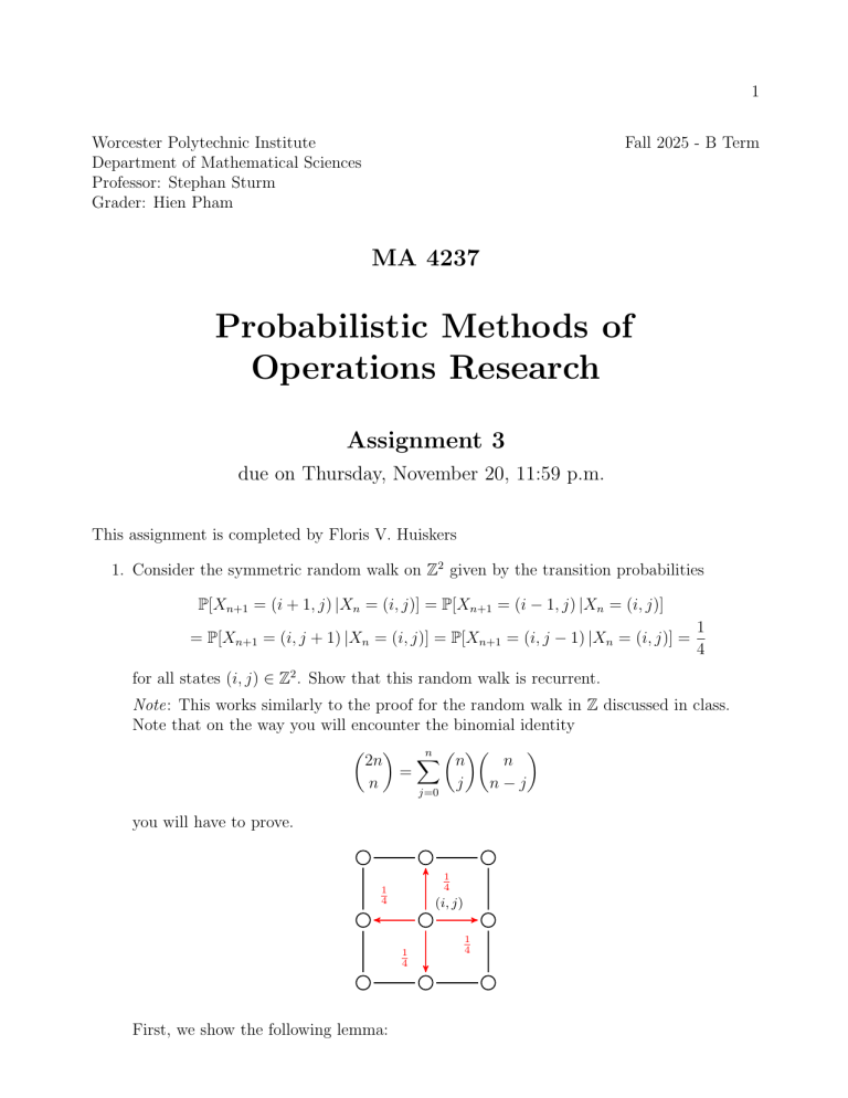 1. Consider the symmetric random walk on Z2 given by the transition probabilities