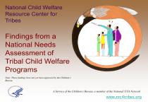National Child Welfare Resource Center for Tribes Findings from a National Needs Assessment of Tribal Child Welfare Programs Note: These findings have not yet been approved by the Children’s Bureau A Service of the Children’s Bureau, a member of the National T/TA Network www.nrc4tribes.org The National Resource Center for Tribes (NRC4Tribes) joined the Children’s Bureau Training and Technical Assistance (T/TA) Network to provide and broker training and technical assistance to support the enhancement of tribal child welfare systems. We provide training and technical assistance at no cost through the T/TA Network to eligible tribes. www.NRC4Tribes.org 2 The Partnership Our Leadership Team: Who we are Jerry Gardner Kathy Deserly Deb Painte Robin Leake Executive Director, Tribal Law and Policy Institute Associate Director, NRC4Tribes Director, Native American Training Institute Research Manager, Butler Institute for Families, DU Director, NRC4Tribes Director, Indian Child and Family Resource Center Joe Walker Evaluation Specialist, Native American Training Institute Miriam Bearse Tribal Child Welfare Specialist NRC4Tribes: Tribal Law and Policy Institute Dr. Cathryn Potter Executive Director, Butler Institute for Families, DU Establishing a shared vision… The NRC4Tribes Leadership Team - comprised of TLPI and its partner agencies held a facilitated strategic planning session to plan the five year implementation of the NRC4Tribes. As four separate entities, the agency staff felt the importance of developing a common vision, mission, philosophy and guiding principles specifically for the NRC4Tribes. 5 The vision… The vision of the National Resource Center for Tribes (NRC4Tribes) is to facilitate the empowerment of Native Nations to nurture the safety, permanence and well-being of American Indian/Alaska Native children, families and communities by offering culturally relevant information, resources and technical assistance so that the dreams and sacrifices of the ancestors are fulfilled and honored. 6 The mission… Our mission is, as members of the Children’s Bureau T/TA Network, to collaborate with Native Nations and our training and technical assistance partners to identify and effectively implement community, culturally based strategies and resources that strengthen tribal child and family services. 11 The philosophy… Children are sacred and entitled to be cherished in a safe and nurturing environment with strong family, community and cultural connections. Their happiness and well-being includes nourishment of mind, body and spirit in order to fulfill their dreams throughout their journey toward becoming a healthy Elder. 12 NRC4Tribes Needs Assessment Purpose Listen to tribal child welfare program staff, families and community stakeholders talk about program strengths, gaps and challenges. Gather relevant information, which can then be distilled into an accurate profile of the tribal child welfare system. Inform Decisions about types of services, administrative functions, data and information collection, program management and reporting. Provide Information about the training and technical assistance available to tribes. 9 NRC4Tribes Needs Assessment Consultants Team of tribal child welfare experts from across the country Selected to: • Gather assessment data • Advise on methods, tools, and outreach • Conduct on-site assessments and telephone interviews Signed confidentiality agreement and followed data protocols Needs Assessment Methods General Online Survey Web-based & paper/pencil survey 85-items; checklists, multiple choice, open-ended All stakeholders invited to participate 262 surveys completed by representatives of more than 100 tribes Tribal Director Telephone Interviews 2-hr. telephone interviews conducted with 31 tribal child welfare directors across 6 Children’s Bureau regions (7 BIA regions; 10 states) Onsite Assessments 20 IV-B funded tribes invited; 16 accepted 149 in-person interviews conducted 42 staff surveys 11 Participation in Needs Assessment All participation was completely voluntary General on-line interview link e-mailed and mailed directly to tribes; marketing through fliers, newsletters, websites and ads Tribes for on-site and telephone interviews selected through stratified sample based on geographic region and size Tribes invited through e-mails, written mail and follow-up telephone calls 12 Respondents More than 400 individuals participated through either a survey or interview These respondents represented 127 federallyrecognized tribes 42.8% of general survey respondents were involved with the tribal child welfare agency 45.6% of interviewees were tribal child welfare staff; 17.4% were foster parents and youth; and 37% were other stakeholders 13 Needs Assessment Participants by BIA Regions Alaska = 9.0% 7.6% 9.0% 6.8% Eastern = 6.3% Eastern Oklahoma = 3.8% 6.3% 3.8% 8.2% Great Plains = 14.7% Midwest = 17.2% Navajo = .8% 14.7% 9.3% Northwest = 10.1% Pacific = 6.3% 6.3% Rocky Mountain = 9.3% 17.2% 10.1% Southern Plains = 8.2% Southwest = 6.8% 0.8% N = 367 Western = 7.6% Needs Assessment Participants by CB Regions 0.5% 0.0% 3.5% Region 1 = 3.5% (CT, MA, ME, NH, RI, VT) 1.9% Region 2 = .5% (NJ, NY, PR, VI) 19.5% 17.1% Region 3 = 0% (DC, DE, MD, PA, VA, WV) Region 4 = 1.9% (AL, FL, GA, KY, MS, NC, SC, TN) Region 5 = 17.1% (IL, IN, MI, MN, OH, WI) 13.9% Region 6 = 17.3% (AR, LA, NM, OK, TX) 17.3% Region 7 = 5.1% (IA, KS, MO, NE) Region 8 = 21.3% (CO, MT, ND, SD, UT, WY) 21.3% 5.1% N = 376 Please note that during data collection for this needs assessment (July–October 2010), there were no federally recognized tribes in Region 3. Region 9 = 13.9% (AZ, CA, HI, NV, Pacific Islands) Region 10 = 19.5% (AK, ID, OR, WA) Onsite and Telephone Needs Assessments 25.0% 20.8% 20.0% 14.8% 15.0% 9.4% 10.0% 5.4% 5.0% 2.7% 0.0% N = 149 6.0% 6.7% 9.4% 9.4% 15.4% Preliminary Data Initial analysis has focused on three questions: What are the existing strengths of t