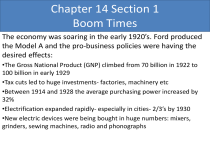 •The Gross National Product (GNP) climbed from 70 billion in 1922 to