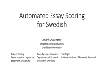 • First attempt to develop Swedish language AES for high school essays
