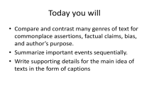 • Compare and contrast many genres of text for