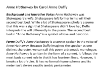 Form: Duffy's Anne Hathaway is a sonnet spoken in the voice of
