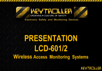 PRESENTATION LCD-601/2 Wireless Access Monitoring Systems Session 1 Access + Monitoring Systems Good Better Best Heavy Duty code/ RFID ignition system with event logging via USB port For: Controlling access on any vehicle --Construction Equipment, aerial lifts, golf carts Inexpensive code and RFID keypad with Impact & Speed Sensing, logging and optional radios For: Medium fleets on budget Used frequently on forklifts Color LCD display with built in Wi-Fi, RFID card reader, electronic check list, logging and Impact & Speed Sensing For: Large fleets with Wi-Fi Data transmitted automatically, reports generated automatically KEYTROLLER LCD 601/602 • • • • • • • • • • • • • State-of-the-art Wireless Access Monitoring Impact and speed sensing capabilities Fits ANY Make or Model Vehicle Larger COLOR LCD screen Accepts Code and/or RFID to start and stop the vehicle Fast Processor---more memory capacity Large Storage Capacity (6000 Events) Built in internal Wi-Fi IP67 weatherproof custom enclosure Temperature extreme components Vibration tested in various frequencies + axis of movement Alpha-numeric keypad Text messaging KEYTROLLER LCD 601/602 2 Models 600 Series 1. LCD 601 - Most commonly used on forklift applications • • • • 2. Full keypad functionality Impact + Speed sensing External alarm output 4 aux inputs LCD 602 - Used in applications where impact and speed sensing is NOT required! • • • Same keypad functionality as 601 Only 1 input (Typically used for seat switch) Much simpler dual relay module KEYTROLLER LCD-601/2 Fits to any make or model vehicle Back hoe Forklift Forklift Stand up Forklift Tugger Order Picker Personnel Carrier Aerial Lifts Skid Steer Loader Electric, Gas, LPG Or Diesel Powered Vehicle 5 KEYTROLLER LCD 601/602 1. NO More Keys 2. START & STOP - From Keypad 3. No More Lost Time Due to Lost or Broken Keys 4. Codes and Cards Are Unique to Operator 5. Codes and Cards only enable vehicle drivers that are authorized and trained on the Vehicle KEYTROLLER LCD 601/602 - Installation If the Truck is electric needs voltage converter (2) Wires To Power Connection at Ignition Switch (2 Black Wires – EL vehicles) (3rd Green Wire connected to the starter circuit – IC vehicles) Aux connections Yellow – Output to flashing siren alarm Red- Seat belt, low oil, high temp Brown-Seat switch Blue-Second hour meter, seat belt White- Dark Blue---Speed sensor 7 KEYTROLLER LCD 601 Auxiliary Inputs + Output Descriptions • 1 Output • Powers external 120dB flashing siren • 4 Inputs • #1 • #2 • #3 • #4 Speed Sensor (Magnetic or Gear Tooth) Aux (Typically seat switch or overload Sensor etc.) Seat Switch (Typically: Seat or foot switch) Aux (Can be set as aux input or “work” time) KEYTROLLER LCD 601/602 - Tabletop Demo Kit 2 3 1 5 1. Keytroller color LCD601 2. 120dB flash-siren alarm 3. Speed Sensor Post 4. Magnet (Speed) with cards 5. Aux Input Switch Box 6. Shock—Impact Module 7. Sample RFID Cards (preprogrammed) 8. Relay—Sensor Module 4 + 7 6 8 Black 12VDC power supply - plugs into top/back of sensor switch box 9 KEYTROLLER LCD 601/602 – Shipped as a complete kit Typically 4 Components 1-Keypad 2-Relay sensor module 3-Impact module All standard components in 601. 4-Adjustable mounting bracket KEYTROLLER LCD 601/602 Color LCD Keypad Component #1 • • • • • • • • • • • Date Day of week Time Wi-Fi signal strength Amount memory left Max temp seen IP address Operators name Hours on machine Maintenance due time Maintenance due date KEYTROLLER LCD 601 Relay Sensor Module Commonly mounted under dash Mounted upright in the engine compartment on IC truck Component #2 Mounted in the electronics compartment on EL truck Mounted flat in the engine compartment of construction equipment KEYTROLLER LCD 601 Impact Module Component #3 Y X • Small size for easy mounting • Mounts flush and flat—not vertical • Can be mounted securely to the frame or with optional mounting bracket (shown) • Y (front-back) axis acclimated to cable • X axis (side-side) KEYTROLLER LCD 601/602 Adjustable Mounting Bracket Component #4 Built in adjustable mounting bracket gives installer many options--- dash install, OHG leg install, OHG above install, etc. 14 KEYTROLLER LCD 601/602 Flexibility in Mounting Options Bracket to overhead guard above Bracket to leg of Overhead guard Bracket to dash Flush mounted to dash KEYTROLLER LCD 601/602 No More Untrained & Unauthorized Drivers! 1. Operators • • • 2. Card or Code Validation & Acceptance • 3. Are trained on system use Will be assigned their own Code or RFID ID Card Will have Access To Assigned Vehicles Only Enables Device KEYTROLLER Compatibility • • • RFID card can be matched with a reader HID Prox is by far the most commonly used RFID card today Any License or Card Can Be Converted into RFID Card with addition of ‘adhesive wafer’ Authorized HID technology partner - http://www.hidglobal.com 16 KEYTROLLER LCD 601/602 Warns Operator When Training is Due or Card Expires • The cards can be programmed to warn the operator within 30 days of the expiration of his card (or when recurrent training is due) • The warning stays on the display for 6 seconds after card flash accepted KEYTROLLER LCD 601/602 Instills responsibility and accountability 1. Employee knows the device is there and know they will be accountable for the following: • Abusive driving • Checklist Completion • Speeding • Maintenance completed • Responsible for usage---time recorded • Idle, moving or loaded time can be recorded 2. Abusive operators will either change their ways, get retrained or be relocated to a new job. 3. Management now have data, reports and emails to back up usage and abuse issues KEYTROLLER LCD 601/602 – Demo #1 Step 1 : Logging In 1. Plug the Unit in 2. “Wake Up” the device by pressing the RED button on the right side of the device. (Avoid 300ma battery draw down on IC Vehicl