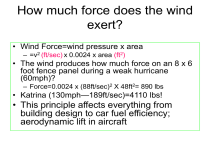 • Katrina (130mph—189ft/sec)=4110 lbs!
