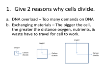 1. Give 2 reasons why cells divide.