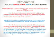 Lead-In: Connects the attention grabber to the remainder of the introduction while presenting more beginning information. Should be approximately 2-3 sentences.