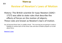 Review of Newton's Laws of Motion