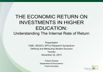 • Conceptually, IRR to higher education is a valuable theoretical construct in understanding demand for PSE