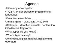 •Java jargons – JDK, IDE, JRE, JVM