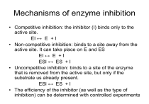 • Uncompetitive inhibition: binds to a site of the enzyme