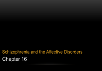 Schizophrenia and the Affective Disorders Chapter 16 Schizophrenia Description • Schizophrenia is a serious mental disorder that afflicts approximately 1 percent of the world’s population. • Its monetary cost to society is enormous; in the United States, this figure exceeds that of the cost of all cancers (Thaker and Carpenter, 2001). • Descriptions of symptoms in ancient writings indicate that the disorder has been around for thousands of years (Jeste et al., 1985). 2 3 Schizophrenia Heritability • If schizophrenia were a simple trait produced by a single gene, we would expect to see this disorder in at least 75 percent of the children of 2 schizophrenic parents if the gene were dominant. • If it were recessive, all children of two schizophrenic parents should become schizophrenic. • However, the actual incidence is less than 50 percent, which means either that several genes are involved or that having a “schizophrenia gene” imparts a susceptibility to develop schizophrenia, the disease itself being triggered by other factors. 4 Schizophrenia Heritability • Gottesman and Bertelsen (1989) found that the percentage of schizophrenic children was identical for both members of such pairs: 16.8 percent for the schizophrenic parents and 17.4 percent for the nonschizophrenic parents. • For the dizygotic twins, the percentages were 17.4 percent and 2.1 percent, respectively. • These results provide strong evidence for the heritability of schizophrenia and also support the conclusion that carrying a “schizophrenia gene” does not mean that a person will necessarily become schizophrenic. (See Figure 16.1.) 5 Schizophrenia Pharmacology of Schizophrenia: The Dopamine Hypothesis • Pharmacological evidence suggests that the positive symptoms of schizophrenia are caused by abnormalities in DA neurons. • The dopamine hypothesis suggests that the positive symptoms of schizophrenia are caused by overactivity of DA synapses. • Chlorpromazine was tried on patients with a variety of mental disorders: mania, depression, anxiety, neuroses, and schizophrenia (Delay and Deniker, 1952a, 1952b). • Chlorpromazine • a dopamine receptor blocker; a “first generation” antipsychotic drug • The drug was not very effective in treating neuroses or affective psychoses, but it had dramatic effects on schizophrenia. 6 Schizophrenia Effects of Dopamine Agonists and Antagonists • The discovery of the antipsychotic effects of chlorpromazine profoundly altered the way in which physicians treated schizophrenic patients and made prolonged hospital stays unnecessary for many of them (the patients, that is). • The efficacy of antipsychotic drugs has been established in many double-blind studies (Baldessarini, 1977). • The drugs actually eliminate, or at least diminish, the patients' positive symptoms. • These drugs were found to have one property in common: They block D 2 and D3 dopamine receptors (Creese, Burt, and Snyder, 1976; Strange, 2008). • 7 Schizophrenia Effects of Dopamine Agonists and Antagonists • Another category of drugs has the opposite effect: namely, production of the positive symptoms of schizophrenia. • The drugs that can produce these symptoms have one known pharmacological effect in common: They act as dopamine agonists. • These drugs include amphetamine, cocaine, and methylphenidate (which block the reuptake of dopamine) and L-DOPA (which stimulates the synthesis of dopamine). • The symptoms that these drugs produce can be alleviated with antipsychotic drugs, a result that further strengthens the argument that the antipsychotic drugs exert their therapeutic effects by blocking dopamine receptors. 8 9 Schizophrenia Consequences of Long-Term Drug Treatment of Schizophrenia • Individuals with schizophrenia may develop symptoms of a neurological disorder called tardive dyskinesia. • Tardus means “slow,” and dyskinesia means “faulty movement”; thus, tardive dyskinesia is a latedeveloping movement disorder. • Tardive Dyskinesia • a movement disorder that can occur after prolonged treatment with antipsychotic medication; characterized by involuntary movements of the face and neck • Tardive dyskinesia appears to be the opposite of Parkinson's disease. • Whereas patients with Parkinson's disease have difficulty moving, patients with tardive dyskinesia are unable to stop moving. • Indeed, dyskinesia commonly occurs when patients with Parkinson's disease receive too much L-DOPA. 10 Schizophrenia Consequences of Long-Term Drug Treatment of Schizophrenia • The accepted explanation for tardive dyskinesia has been a phenomenon known as supersensitivity—a compensatory mechanism in which some types of receptors become more sensitive if they are inhibited for a period of time by a drug that blocks them. • Presumably, when D 2 receptors in the caudate nucleus and putamen are chronically blocked by an antipsychotic drug, they become supersensitive, which in some cases overcompensates for the effects of the drug, causing the neurological symptoms to occur. 11 Schizophrenia Evidence for Brain Abnormalities in Schizophrenia • The relative ventricle size of the schizophrenic patients was more than twice as great as that of normal control subjects. (See Figure 16.3.) • The most likely cause of the enlarged ventricles is loss of brain tissue; thus, the scans provide evidence that chronic schizophrenia is associated with brain abnormalities. 12 Schizophrenia Evidence for Brain Abnormalities in Schizophrenia • In fact, Hulshoff-Pol et al. (2002) found that although everyone loses some cerebral gray matter as they age, the rate of tissue loss is greater in schizophrenic patients. 13 Schizophrenia Epidemiological Studies • Many studies have shown that people born during the late winter and early spring are more likely to develop schizophrenia—a phenomenon known as the seasonality effect. • Seasonality Effect • the increased incidence of sch