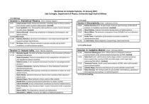 Workshop on Complex Systems, 15 January 2015 Sala Consiglio, Department of Physics, Università degli Studi di Milano Session 1: Statistical Physics. Chair: Stefano Zapperi 9:10 Lasse Laurson (Aalto University Helsinki): Crackling noise in driven systems: from domain walls to plastic deformation. (Invited) 9:40 Luca Cipelletti (Univ. Montpellier) Off-­‐equilibrium surface tension between miscible fluids. (Invited) 10:10 Marco Gherardi, Measuring complexity in biological, technological, and logical systems. 10:30 Coffee break 11:00 Gianluca Bertaina, Dynamical correlations in one-­‐dimensional liquid 4He beyond Luttinger liquid theory. 11:20 Shi Chen, Electron-­‐Plasma turbulent evolution and the role of initial conditions: a multiresolution analysis Session 2: Instant talks. Chair: Marina Carpineti 11:4012:40