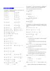 In Exercises 37– 40, find each limit by evaluating the derivative of a suitable function at an appropriate point. EXERCISES 3.1 Hint: Look at the definition of the derivative. In Exercises 1–34,find the derivative of the function f by using the rules of differentiation. (1 h)3 1 h 0 h 37. lim 1. f ( x) 3 2. f ( x) 365 3. f ( x) x6 4. f ( x) x9 5. f ( x) x2.1 6. f ( x) x0.8 7. f ( x) 4 x 2 8. f ( x) 4x3 9. f ( x) r 4 10. f (r ) r 3 3 39. lim 5 45 x 4 40. lim 2 38. lim x 1 Hint: Let h x 1 3(2 h)2 (2 h) 10 h 0 h 1 (1 t ) 2 t 0 t (1 t ) 2 11. f ( x) 9 x1 3 12. f ( x) 13. f ( x) 5 x 14. f (u ) 15. f ( x) 7 x12 16. f ( x) 0.3x1.2 17. f ( x) 5x2 3x 7 18. f ( x) x3 3x2 1 19. f ( x) 2x 2x 6 20. f ( x) x 2 x 5 3 2 In Exercises 41– 44, find the slope and an equation of the tangent line to the graph of the function f at the specified point. 2 u 4 41. f ( x) 2 x2 3x 4; 2 22. f ( x) 0.002x 0.05x 0.1x 20 2 x3 4 x 2 3 x 24. f ( x) x3 2 x 2 x 1 x 25. f ( x) 5x 3x 4 26. f ( x) 6 x 4 3 52 27. f ( x) 2 x 4 x 30. f ( x) ent line. 1 28. f ( x) ( x 3 x 6 ) 3 46. Let f ( x) x3 4 x2 . Find the points(s) on the graph of f where the tangent line is horizontal. 47. Let f ( x) x3 1 . a. Find the point(s) on the graph of f where the slope of the tangent line is equal to 12. b. Find the equation(s) of the tangent line(s) of part (a). 32. f (t ) 4t 2 t 3 34. f ( x) b. f (0) 36. Let f ( x) 4x5 4 2x3 2 x . Find a. f (0) 5 (4, ) 2 b. Sketch the graph of f and draw the horizontal tang- c. Sketch the graph of f showing the tangent line(s). 2 48. Let f ( x) x3 x 2 12 x 6 . Find the values of x 3 2 4 1 x3 x for which: a. f ( x) 12 35. Let f ( x) 2 x3 4 x . Find: a. f (2) x ; line is horizontal. 5 2 1 200 x3 x 2 x 2 3 13 2 x x 1 (1,0) a. Find the point on the graph of f where the tangent 2 2 5 (1, ) 3 45. Let f ( x) x3 . 4 3 2 t4 t3 t 31. f ( x) 3x 5 x 33. f ( x) 44. f ( x) x 2 32 x x 2 3x 1 3 1 29. f (t ) 5 42. f ( x) x 2 2 x 2 ; 3 2 23. f ( x) (1,3) 43. f ( x) x4 3x3 2x2 x 1 ; 21. f ( x) 0.03x2 0.4 x 10 3 x5 1 x 1 c. f (2) b. f ( x) 0 c. f ( x) 12 49. Let f ( x) b. f (16) 1 4 1 3 x x x 2 . Find the point(s) on the 4 3 graph of f where the slope of the tangent line is equal to : — 52 — a. 2x b. 0 c. 10x 54. ONLINE BUYERS As use of the Internet grows, so does the 50. A straight line perpendicular to and passing through the number of consumers who shop online. The number of point of tangency of the tangent line is called the normal online buyers, as a percent of net users, is expected to be (1 t 7) P(t ) 53t 0.12 to the curve. Find an equation of the tangent line and the normal to the curve y x 3x 1 at the point (2,3). 3 51. GROWTH OF A where t is measured in years, with t = 1 corresponding CANCEROUS TUMOR The volume of a to the beginning of 2002. spherical cancerous tumor is given by the function a. How many online buyers, as a percent of net users, 4 V (r ) r 3 3 are there expected to be at the beginning of 2007? b. How fast is the number of online buyers, as a where r is the radius of the tumor in centimeters. Find percent of net users, expected to be changing at the the rate of change in the volume of the tumor when beginning of 2007? 5 b. r cm 4 2 a. r cm 3 Source: Strategy Analytics 55. MARRIED HOUSEHOLDS 52. VELOCITY OF BLOOD IN AN ARTERY The velocity (in centi- CHILDREN The percent of families that were married households with children meters/second) of blood r cm from the central axis of between 1970 and 2000 is approximately an artery is given by p (t ) υ(r ) k ( R r ) 2 WITH 2 49.6 t 0.27 (1 t 4) where k is a constant and R is the radius of the artery where t is measured in decades, with t = 1 correspo- (see the accompanying figure). Suppose k = 1000 and R = 0.2cm. Find υ(0.1) and υ(0.1) and interpret nding to 1970. a. what percent of families were married households your results. with children in 1970? In 1980? In 1990? In 2000? b. How fast was the percent of families that were married households with children changing in 1980? In 1990? Source: U.S. Census Bureau 53. SALES OF DIGITAL CAMERAS According to projections 56. EFFECT made in 2004, the worldwide shipments of digital STOPPING ON AVERAGE SPEED According to data from a study, the average speed of your trip A (in point-and-shoot cameras are expected to grow in mph) is related to the number of stops/mile you make accordance with the rule N (t ) 16.3t 0.8766 OF on the trip x by the equation (1 t 6) A where N (t ) is measured in millions and t is measured in years, with t = 1 corresponding to 2001. 26.5 x 0.45 Compute dA / dx for x = 0.25 and x = 2. How is the a. How many digital cameras were sold in 2001 (t = 1)? rate of change of the average speed of your trip b. How fast were sales increasing in 2001? affected by the number of stops/mile? c. What were the projected sales in 2005? Source: General Motors d. How fast were the sales projected to grow in 2005? 57. PORTABLE PHONES The percent of the U.S. population Source: International Data Corp with portable phones is projected to be P(t ) 24.4t 0.34 — 53 — (1 t 10) where t is measured in years, with t = 1 corresponding b. How fast was the level of sales increasing at the beg- to the beginning of 1998. inning of 1997? How fast were sales increasing at a. What percent of the U.S. population is expected to the beginning of 2002? have portable phones by the beginning of 2006? Source: World Semiconductor Trade Statistics b. How fast is the percent of the U.S. population with 61. CHILD OBESITY The percent of obese children, ages 12– portable phones expected to be changing at the 19, in the United States has grown dramatically in rec- beginning of 2006? ent years. The percent of obese children from 1980 thr- Source: Banc America Robertson Stephens ough the year 2000 is approximated by the function p(t ) 0.0105t 2 0.735t 5 58. DEMAND FUNCTIONS The demand function for the Luminar desk lamp is given by (0 t 20) where t is measured in years, with t = 0 corresponding p f ( x) 0.1x2 0.4x 35 to the beginning 