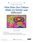 N E W Y O R K S T A T E SO C I A L S T U D I E S R E SO U R C E T O O L K I T 3rd Grade Cultural Diversity Inquiry How Does Our Culture Make Us Similar and Different? © iStock / © yellowcrestmedia. Supporting Questions 1. What is culture? 2. How does history impact cultures around the world today? 3. How are the lives of children similar and different in global communities? THIS WORK IS LICENSED UNDER A CREATIVE COMMONS ATTRIBUTION-NONCOMMERCIAL-SHAREALIKE 4.0 INTERNATIONAL LICENSE. 1 N E W Y O R K S T A T E SO C I A L S T U D I E S R E SO U R C E T O O L K I T 3rd Grade Cultural Diversity Inquiry How Does Our Culture Make Us Similar and Different? New York State Social Studies Framework Key Idea & Practices 3.5: Communities share cultural similarities and differences across the world. Staging the Question Discuss the concept of “culture,” by brainstorming responses to the question, “what does culture look like?” Gathering, Using, and Interpreting Evidence Chronological Reasoning and Causation Comparison and Contextualization Geographic Reasoning Civic Participation Supporting Question 1 Supporting Question 2 Supporting Question 3 Research Understand What is culture? Understand How does history impact cultures around the world today? Formative Performance Task List key details from text and illustrations to answer the supporting question. Featured Source Source A: “Discovering Culture” Assess How are the lives of children similar and different in global communities? Formative Performance Task Identify examples of historical influences on present-day cultures around the world on a three-column chart. Formative Performance Task Write a paragraph that compares and contrasts aspects of daily life for kids in several world communities. Featured Sources Source A: “Brazil Today—Carnaval! The Celebration of Brazil” Featured Source Source A: Day in the Life Source B: Excerpts from Exploring Countries: France Source C: “The Ancient Art of Rangoli” Summative Performance Task ARGUMENT How does our culture make us similar and different? Construct an argument supported with evidence that addresses the compelling question. Taking Informed Action ACT Plan for and host a cultural-diversity fair for the other third-grade classes. THIS WORK IS LICENSED UNDER A CREATIVE COMMONS ATTRIBUTION-NONCOMMERCIAL-SHAREALIKE 4.0 INTERNATIONAL LICENSE. 2 N E W Y O R K S T A T E SO C I A L S T U D I E S R E SO U R C E T O O L K I T Overview Inquiry Description This inquiry engages third graders in expanding their understandings of diverse cultures. The compelling question “How does our culture make us similar and different?” is intellectually respectful of students who, by their nature, are interested in people and their similarities and differences. It allows for engagement with several social studies disciplines as students examine diverse cultures and histories around the globe. This inquiry embeds the Taking Informed Action sequence throughout. The understand element is developed through Supporting Questions 1 and 2 while the assess element is represented in Supporting Question 3. The act piece, the planning and hosting of a cultural diversity fair for other third-grade classes, can be done in addition to, or as a substitute for, the Summative Performance Task. In addition to the Key Idea listed earlier, this inquiry highlights the following Conceptual Understandings: (3.5a) The structure and activities of families and schools share similarities and differences across world communities. (3.5b) Communities around the world can be diverse in terms of their members, languages spoken, customs and traditions, and religious beliefs and practices. People in world communities celebrate various holidays and festivals. NOTE: This inquiry is expected to take four to six 30-minute class periods. The inquiry time frame could expand if teachers think their students need additional instructional experiences (i.e., supporting questions, formative performance tasks, and featured sources). Teachers are encouraged to adapt the inquiries to meet the needs and interests of their particular students. Resources can also be modified as necessary to meet individualized education programs (IEPs) or Section 504 Plans for students with disabilities. Structure of the Inquiry In addressing the compelling question “How does our culture make us similar and different?” students work through a series of supporting questions, formative performance tasks, and featured sources in order to construct an argument with evidence from a variety of sources. Staging the Compelling Question Because culture is such a complex concept, it would useful to give students an open-ended opportunity to offer their initial ideas through a brainstorming activity whereby they respond to the question, “What does culture look 3 N E W Y O R K S T A T E SO C I A L S T U D I E S R E SO U R C E T O O L K I T like?” Teachers should chart the students’ responses and return to them throughout the inquiry to see if they want to add to, delete from, or modify their list. Supporting Question 1 Supporting Question 1—“What is culture?”—addresses a key consideration in the third-grade curriculum of world communities and global citizenship. Students learn that culture is an umbrella term for social organization, customs and traditions, language, arts and literature, religion, forms of government, and economic systems. Featured Source A provides information about the concepts of culture, customs, and traditions. The formative performance task asks students to pull those ideas from the featured source and to construct a response to the supporting question. NOTE: Lessons 2 and 3 from Unit 1 of Grade 3 NYS ELA Module 2B can be incorporated into this phase of the inquiry to extend learning and to include additional Common Core ELA objectives. Supporting Question 2 Supporting Question 2—“How does history impact cultures around the world today?