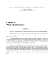 Instructor's Manual and Test Bank to accompany Meteorology Today, 10th Edition Jonathan D. W. Kahl University of Wisconsin-Milwaukee Chapter 10 Wind: Global Systems Summary The study of winds continues in this chapter with a discussion of global scale circulation patterns. The three-cell model of the general circulation is presented and is compared with real world observations of pressures and winds. The seasonal movement of these features and their effect on regional climate is studied. The chapter examines the major jet streams found in the earth's atmosphere. The polar jet stream and the subtropical jet form in regions with strong horizontal temperature gradients. Conservation of angular momentum also plays a role in the formation of these fast moving currents of air. Focus sections on “The Dishpan Experiment” and “Momentum - A Case of Give and Take” elucidate the physical reasons for the occurrence of global wind patterns and jet streams. Interactions between global scale wind patterns and the earth's oceans are examined, and the positions and directions of the major ocean currents are shown. Finally, the El Niño/Southern Oscillation, the North Atlantic Oscillation, the Pacific Decadal Oscillation and the Arctic Oscillation are described, with considerable attention given to the possible climatological effects associated with both El Niño and La Niña events. The Ocean Niño Index (ONI) is introduced as a way of quantifying the occurrence and strength of El Niño and La Niña events. A final focus section on “El Niño and the Wiinter Olympics of 2010” presents an interesting example of the ways that global wind systems and their variations affect the public. 1 2 Teaching Suggestions 1. Clouds produced by some of the mesoscale and global scale wind circulation patterns discussed in this chapter can be seen on satellite images. The ITCZ is often very clearly defined on a full or half disk image from a geostationary satellite. 2. During the winter, examine a surface weather map in class and compare temperatures to the north and the south of the polar front. There is often a very sharp temperature gradient. Locate the polar jet stream on an upper-level chart and determine the region where the maximum winds are found. 3. Using realtime weather imagery, have students locate the prevailing westerlies and the polar easterlies. 4. Have students search weather charts for different regions of the world to locate polar easterlies, middle latitude westerlies and trade winds. A good resource for this is the World Meteorological Organization’s website: http://www.wmo.int/pages/members/index_en.html 5. Locate the ITCZ using satellite imagery, then examine a sounding along the ITCZ using the University of Wyoming’s Radiosonde data website. Examine the atmospheric stability revealed by the sounding: http://weather.uwyo.edu/upperair/sounding.html 6. Examine a surface weather map to determine which of the semi-permanent highs or lows are affecting your current weather. 7. Discuss the effects of the jet stream on your local weather. Which jet stream influences your weather more, the subtropical or polar front jets? How does the jet stream affect the local weather? 8. If you are close to an ocean, discuss the influence the ocean has on your local weather. 9. During periods of El Niño or La Niña, discuss any effects these large-scale features have on your local weather. 10. Compare and contrast an upper-level weather chart showing your location with a similar chart for the same latitudes in the southern hemisphere. Relate any differences to concepts presented in this chapter. Student Projects 1. Have students research and plot the path of some of the early voyages of discovery made aboard sailing ships (Columbus or Magellan, for example). Do the routes appear reasonable in light of what the students know about the earth's general circulation pattern? 3 2. Have students collect climatological data for their location (or another region) corresponding to one or two strong El Niño events. Select two or three periods when there was not a strong El Niño to act as a control. What effects might the El Niño have on local weather or climate? Do the students see any evidence of this in their climate data? 3. Have students present actual weather data for different areas of the world that demonstrate the main characteristics of the following features: Hadley cell, subtropical jet, trade winds, westerlies, polar front, and polar front jet. 4. Have students record 500 hPa winds every day for a week from the nearest radiosonde station. Is the wind direction consistent with what one might expect from the atmospheric general circulation presented in class? A good resource for this is: http://weather.uwyo.edu/upperair/sounding.html 5. Have students read and summarize or present Prof. Alistair Fraser’s “Bad Coriolis” article: http://www.ems.psu.edu/~fraser/Bad/BadCoriolis.html Answers to Questions for Review 1. Answer not provided. 2. When we compare the January and July maps, we can see several changes in the semipermanent pressure systems. The strong subpolar lows so well developed in January over the Northern Hemisphere are hardly discernible on the July map. The subtropical highs, however, remain dominant in both seasons. Because the sun is overhead in the Northern Hemisphere in July and overhead in the Southern Hemisphere in January, the zone of maximum surface heating shifts seasonally. In response to this shift, the major pressure systems, wind belts, and ITCZ shift toward the north in July and toward the south in January. 3. Because the earth rotates, creating a Coriolis force, which would deflect the wind from purely north-south motion. 4. Precipitation occurs at the boundaries of the general circulation cells where air rises. Rising air occurs at the equator along the ITCZ, and at 60o N and S. 5. Prevailing westerlies. 6. During the summer, the Pacific high drifts northward to its easter