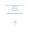 Multi-criteria infrastructure for location-based applications Shortly known as: Localization Platform Application Design Document Ronen Abraham Ido Cohen Yuval Efrati Tomer Sole' April 2010 Table Of Contents 1. Use Cases………………………………………………………………………………………………………4 1.1. The Actors……………………………………………………………………………………………………..4 1.2. Use-Cases………………………………………………………………………………………………………5 2. Data Model…………………………………………………………………………………………………10 2.1. Android API…………………………………………………………………………………………………10 2.1.1. Description of Data Objects…………………………………………………………………………10 2.1.2. Data Objects Relationships………………………………………………………………………….11 2.2. Storage Server……………………………………………………………………………………….……12 2.2.1. Description of Data Objects…………………………………………………………………………12 2.2.2. Data Objects Relationships………………………………………………………………………….11 2.3. Prediction Server (a registered service) ………………………………………………………13 2.3.1. Description of Data Objects…………………………………………………………………………13 2.3.2. Data Objects Relationships……………………………………………………………………….…14 2.4. Databases……………………………………………………………………………………………………15 2.4.1. Storage Server…………………………………………………………………………………………….15 2.4.1.1. ERD Diagram………………………………………………………………………………………………15 2.4.1.2. Main Tables……………………………………………………………………………………………..…15 2.4.1.3. Main Transactions………………………………………………………………………………………16 2.4.2. Prediction Server…………………………………………………………………………………………18 2.4.2.1. ERD Diagram………………………………………………………………………………………………18 2.4.2.2. Main Tables………………………………………………………………………………………………..18 2.4.2.3. Main Transactions………………………………………………………………………………………19 3. Behavioral Analysis……………………………………………………………………………………..20 3.1 Sequence Diagrams……………………………………………………………………………………..20 3.1.1 Storage server – add location………………………………………………………………………21 3.1.2 Storage server – get user's last locations…………………………………………………….22 3.1.3 Storage server – Register user……………………………………………………………………..23 3.1.4 Storage server – Unregister user…………………………………………………………………24 3.1.5 Prediction server – add user's location………………..………………………………………25 3.1.6 Prediction server – predict location………………………………….…………………………26 3.2 Events………………………………………………………………………………….………………………28 3.3 States……………………………………………………………………………………….…………………29 3.3.1 Localization server state chart………………………………………………………………….…29 3.3.2 Prediction server state chart ….…………………………………………………………………..30 3.3.3. Localization Client Android state chart………………………………………………………..30 4. Object-Oriented Analysis…………………………………………………………………………….32 4.1. Android API…………………………………………………………………………………………………32 4.1.1. Class Diagrams……………………………………………………………………………………….…...32 4.1.2. Class Descriptions………………………………………………………………………………………..32 4.2. Storage Server…………………………………………………………………………………………….36 4.2.1. Class Diagrams…………………………………………………………………………………………….36 4.2.2. Class Descriptions………………………………………………………………………………………..39 4.3. Prediction Server…………………………………………………………………………………………41 4.3.1. Class Diagrams…………………………………………………………………………………………….41 4.3.2. Class Descriptions………………………………………………………………………………………..43 4.4. Packages……………………………………………………………………………………………………..45 4.4.1. 4.4.2. 