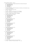 91 Practice Problems for Chapter 16 – Chem 1C 1. Which one of the following is the strongest intermolecular force experienced by noble gases? A) London dispersion forces B) dipole-dipole interactions C) hydrogen bonding D) ionic bonding E) polar covalent bonds 2. Properties of liquids lie (closer to/further from) properties of a solid than to (or from) properties of a gas. A) closer to B) further from 3. Molecular complexity leads to lower viscosity. A) True B) False 4. Which of the following is most likely to be a gas at room temperature? A) K2S B) C8H18 C) MgF2 D) F2 E) H2O 5. Which of the following should have the highest boiling point? A) Na2O B) HF C) NH3 D) N2 E) H2O 6. Which intermolecular force is the strongest? A) dipole-dipole interactions B) London dispersion forces C) hydrogen bonding D) ionic bonding E) polar covalent bonds 7. Identify the major attractive force in HF. A) London dispersion forces B) dipole-dipole interactions C) hydrogen bonding D) ionic bonding E) none of these 8. Identify the major attractive force in H2S. A) London dispersion forces B) dipole-dipole interactions C) hydrogen bonding D) ionic bonding E) none of these 9. Identify the major attractive force in CaF2. A) London dispersion forces B) dipole-dipole interactions C) hydrogen bonding D) ionic bonding E) none of these 10. Identify the major attractive force in Ne. A) London dispersion forces B) dipole-dipole interactions C) hydrogen bonding D) ionic bonding E) none of these 11. Identify the major attractive force in Cl2. A) London dispersion forces B) dipole-dipole interactions C) hydrogen bonding D) ionic bonding E) none of these 12. Which of the following compounds has the lowest boiling point? A) CH4 B) C2H6 C) C3H8 D) C4H10 E) C5H12 13. Which of the following compounds has the highest boiling point? A) C2H6 B) CO C) H2 D) N2 E) Ne 14. Which of the following compounds has the highest boiling point? A) CH4 B) H2O C) NF3 D) O2 E) He 15. Which substance involves no intermolecular forces except London dispersion forces? A) K B) H2S C) NaF D) H2 E) HCl 16. The elements of Group 5A, the nitrogen family, form compounds with hydrogen that have the boiling points listed below. SbH3 –17°C, AsH3 –55°C, PH3 –87°C, NH3 –33°C The first three elements illustrate a trend where the boiling point decreases as the mass decreases; however, ammonia (NH3) does not follow the trend because of A) dipole-dipole attraction. B) metallic bonding. C) hydrogen bonding. D) London dispersion forces. E) ionic bonding. 17. The resistance of a liquid to an increase in its surface area is called A) capillary action. B) surface tension. C) vapor pressure D) viscosity. E) none of these 18. On the basis of your knowledge of bonding in liquids and solids, which of the following substances has the highest melting temperature? A) NaBr B) Br2 C) NO2 D) CF4 E) H2O 19. Which of the following is the correct order of boiling points for NaNO 3, CH3OH, C2H6, and Ne? A) Ne < CH3OH < C2H6 < NaNO3 B) NaNO3 < CH3OH < C2H6 < Ne C) Ne < C2H6 < NaNO3 < CH3OH D) Ne < C2H6 < CH3OH < NaNO3 E) C2H6 < Ne < CH3OH < NaNO3 20. Which statement regarding water is true? A) Energy must be given off in order to break down the crystal lattice of ice to a liquid. B) Hydrogen bonds are stronger than covalent bonds. C) Liquid water is less dense than solid water. D) Only covalent bonds are broken when ice melts. E) All of these statements are false. 21. The unit cell in this two-dimensional crystal contains __________ Xs and __________ Os. A) 22. 1, 1 B) 2, 1 C) 1, 2 D) 4, 1 E) 1, 4 In cubic closest-packed solids, what percentage of space is occupied by the spheres? A) 43.8% B) 52.4% C) 68.0% D) 74.0% E) none of these 23. Which of the following is the smallest hole in a closest-packed lattice of spheres? A) B) C) D) E) trigonal tetrahedral cubic octahedral none of these 24. Which substance can be described as cations bonded together by mobile electrons? A) Ag(s) B) S8(s) C) Kr(l) D) KCl(s) E) HCl(l) 25. What is the net number of face-centered atoms contained in a face-centered cubic unit cell? A) 1 B) 3 C) 4 D) 6 E) none of these Use the following to answer questions 26-28: The molar volume of a certain form of solid lead is 18 cm 3/mol. Assuming cubic closest-packed structure, determine the following. 26. The number of Pb atoms per unit cell A) 3 B) 4 C) 10 D) 12 E) 14 27. The volume of a single cell A) 1.20 102 pm3 B) 28. The radius of a Pb atom A) 1.74 pm B) 17.4 pm 1.20 104 pm3 C) C) 174 pm 1.20 106 pm3 D) 1.20 108 pm3 E) none of these D) 1740 pm E) none of these 29. Which one of the following statements about solid Cu (face-centered cubic unit cell) is incorrect? A) It will conduct electricity. B) There are two atoms per unit cell. C) The number of atoms surrounding each Cu atom is 12. D) The solid has a cubic closest-packed structure. E) The length of a face diagonal is four times the Cu radius. 30. Which of the following statements is(are) false? I. The hexagonal closest-packed structure is ABAB.... II. A body-centered cubic unit cell has four atoms per unit cell. III. For unit cells having the same edge length, a simple cubic structure would have a smaller density than a body-centered cube. IV. Atoms in a solid consisting of only one element would have six nearest neighbors if the crystal structure was a simple cubic array. A) I only B) II only C) II, III only D) I, IV E) II, III, IV 31. Aluminum metal crystallizes in a face-centered cubic structure. What is the relationship between the radius of an Al atom (r) and the length of an edge of the unit cell (E)? A) r = E/2 B) r E/ 8 C) D) E) r ( 3 / 4) E r = 2E r = 4E 32. A metal crystallizes in a body-centered unit cell with an edge length of 2.12 102 pm. Assume the atoms in the cell touch along the cube diagonal. What will be the percentage of empty volume in the unit cell? A) 0.00% B) 26.0% C) 32.0% D) 68.0% E) 75.5% 33. A sample of Co crystallizes in the hexagonal closest-packed (hcp) structure. Ea
