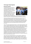 The Hunger Project-Uganda Executive Summary This reporting period covers activities from July-December 2010 (Quarters 3 and 4). Activities were implemented within the context of The Hunger Project’s (THP’s) global strategic direction. The focus was on the three strategic pillars: mobilization, empowering women and partnership with local governments. All programs were implemented according to the Epicenter Strategy in all 11 epicenters in the eight districts of operation. Six of these epicenters, Mbarara, Iganga, Kiboga, Mpigi, Wakiso and Kiringente, have been declared self-reliant; the Mbale Epicenter has just entered phase three; Kiruhura Epicenter is in phase three; and Namayumba, Bulamagi and Kenshunga are in phase one. The programs implemented included food production and food security; HIV/AIDS and gender inequality; health and nutrition; water, sanitation and environment; Vision, Commitment and Action Workshops (VCAWs); functional adult literacy program (FALP) classes and early childhood education; microfinance and women’s empowerment; and Mbale Epicentre construction. Some activities were implemented through partnerships with other like-minded organizations. The most effective partnerships included those with MildMay, Catholic Relief Services (CRS), Ford Foundation, Bead for Life and the district local governments. The key achievements registered during the Quarter 3 of 2010 included: mobilization of local materials to complete the Mbale Epicenter structures and the L-shaped building being almost ready for inauguration; Mbale District local government made budget estimates to construct a two-stance pit latrine for medical staff quarters, placenta pit, beds for the Health Unit, delivery beds, water tank, filing cabinets, and other items as per the signed Memorandum of Understanding; hosting the Senior Microfinance Program Officer (MFPO) from THP Global Office, Marie Mintalucci; Registration of Mbarara Savings and Credit Cooperative (MESACCO or rural bank) becoming the sixth government-recognized and women-owned and managed rural bank of THP-Uganda; and final agreements with Namirembe Diocese (Church of Uganda) and Wakiso District local government to implement the Epicenter Strategy in Namayumba were in final stages. Namirembe diocese donated five acres of land for epicenter establishment, and processing of the 49-year lease offer for land for the Namayumba Epicenter was in the final stages. Local material mobilization was in progress, spearheaded by the local community leaders and the church. The key achievements registered during Quarter 4 of 2010 included: (i) completion and subsequent inauguration of Mbale Epicenter in a public assembly; the epicenter is now in phase three of the Epicenter Strategy; (ii) inauguration of Mbarara’s SACCO in a public assembly, becoming the sixth government-recognized and women-owned and managed rural bank of THP Uganda (see photo above); (iii) THP-Uganda hosted a team of eight investors from Australia who appreciated THP-Uganda’s Epicenter Strategy for the end of hunger and The Hunger Project-Uganda Report to the Global Board (April 2011) Page 1 of 11 poverty and pledged continued support; and (iv) through continuous follow-up, THP-Uganda realized the presidential pledge of a motor vehicle (truck) to support Mpigi Epicenter. Details on Progress Achievement Measurement Food security improvements. In Quarter 3, epicenters contributed towards the seed input revolving fund to procure improved seed for their partners. Improved maize seed – Longe 5 and Beans (K132) – were procured and distributed to partners to boost food production and food security both at the household and community level. Monitoring of partners’ gardens to establish the germination rate of beans and maize seed was done. The germination rate for maize and beans was 30 percent and 95 percent respectively and some food has been stored in the epicenter food banks by the partners. Vegetable demonstration gardens were established at the epicenters in partnership with East African Seed Company to increase the adoption rate of production of improved vegetable seed, which would subsequently contribute towards improved nutrition. At Kiringente Epicenter, a 60-banana demonstration garden was set up in partnership with Kiringente Sub County National Agriculture Advisory Services (NAADS program) to act as both a demonstration and a source of improved banana suckers. In Kiboga, cassava stems multiplication has been scaled up in partnership with Catholic Relief Services (CRS Uganda) to increase farmers’ access to disease-free and high-yield cassava variety MH97/2961 so as to increase cassava production and food security. Sensitization of farmers on cassava production and cassava diseases through radio talk shows was conducted by THPUganda and CRS, and a total of 59 bags of disease-resistant cassava stems (variety MH/97.2961) were distributed to partners to increase cassava production at both household and community levels. A one-acre maize demo garden was established at Iganga Epicenter in partnership with the Uganda National Agricultural Inputs and Dealers Association (UNADA) for learning and demonstration purposes. Partners have received training in agribusiness; crop agronomy; and post-harvest handling of maize, beans and groundnuts conducted by THP-Uganda staff and the subcounty extension workers. The Hunger Project-Uganda Report to the Global Board (April 2011) Page 2 of 11 HIV/AIDS awareness increased. Two planning meetings were held with Agro Ways Warehouse (a Uganda Commodity Exchange Warehouse) and the World Food Programme (WFP) to discuss payments for maize supplied by our partners for bulk marketing in Iganga and Bulamagi Epicenters. Partners received UGX 46,925,600 (US$19,250) from the sale of 107,982 kgs of maize. The sudden and unpredictable weather patterns, including excessive rains and thunderstorms, coupled with poor soil, are still affecting the partners’ outp
