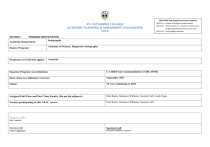 ST. CATHARINE COLLEGE ACADEMIC PLANNING & ASSESSMENT COLLOQUIUM 2014 2014 APAC Planning/Assessment Functions: 2013-14 – review of program assessments 2014-15 – actions items as a result of review and budget adjustments for current year 2015-16 – new budget requests SECTION I: PROGRAM IDENTIFICATION Sonography Academic Department: Degree Program: Program Level (all that apply): Associate of Science, Diagnostic Sonography Associate Separate Program Accreditations: CAAHEP (on recommendation of JRC-DMS) Date of last accreditation review(s): September 2011 Status: 10 year continuing to 2021 Assigned Full-Time and Part-Time Faculty (Do not list adjunct.): Erin Burns, Monnica Williams, Saretta Craft, Leah Tupts Faculty participating in this APAC review: Erin Burns, Monnica Williams, Saretta Craft August 7, 2014 Date Completed Saretta Craft Saretta Craft Chair’s Signature Program Coordinator’s Signature SECTION II: PROGRAM DEMOGRAPHIC DATA ASSOCIATE LEVEL *Students declared in major Fall Spring **Students graduating in major (summer, fall, spring) Average GPA of Graduate ***Retention Data (fall to fall) 2013-14 2012-13 2010-11 2009-10 34 34 69 67 57 15 3.33 16 Data 15 Data Data Data 32% Notes 2013-14 numbers corrected to reflect only those students currently enrolled in the program; excluded are those designated as ‘pre’ sonography majors. 16 Corrected from 17 to 16 due to death of student. 3.58 69% Notes Will need to be recalculated based on the revised data. 100% from fall 2013 1st yr students continuing to fall 2014. *Based on CPE Fall and Spring enrollment report as of Colleges census date. **Based on CPE Degrees Conferred Report as of July 1. Some anticipated graduates, due to incompletes, may not be certified for graduation by this date. ***Based on CPE Fall to Fall enrollment comparisons. Data is program specific, does not reflect institution-wide retention of students. Data below reflects standardized tests, licensure exams, etc. designated as assessment within the program. Note: If no data is included, there is no record of it in the IR&E office. If this data is maintained within the department or program, please complete the table. 2013-14 2012-13 2011-12 2010-11 2009-10 Notes Name of Exam: RDMS (AB) Students Eligible 6 Students Attempting 1 Students Passing 1 6 0 0-N/A 6 Attempting Passing 6 4 4 6 2 2 Notes Notes Notes Per JRCDMS guidelines this data will be updated/confirmed June 2015. Name of Exam: RDMS (OB) Students Eligible 6 Students Attempting 6 Students Passing 6 6 4 4 6 Attempting Passing 6 3 3 6 3 3 Notes Notes All students attempted/passed; data will not change. Name of Exam: RVT Students Eligible Students Attempting Students Passing 4 3 1 5 Attempting Passing 3 2 2 4 2 2 Notes Notes All students attempted/passed; data will not change. 4 4 4 Name of Exam: RDCS Students Eligible 6 6 5 5 5 Notes Students Attempting 6 5 Attempting 5 5 Notes Students Passing 5 5 Passing 5 5 Per JRCDMS guidelines this data will be updated/confirmed June 2015. Comments on Program Demographic and Common Survey Data (enrollment, retention, graduates, etc.): It should be noted that certification (earning a credential of RDMS (AB)(OB), RVT or RDCS) is voluntary. JRCDMS requires 60% success rate for those attempting these certifying examinations. Also of note, students are now eligible to attempt all exams prior to May graduation. Exceptional performance by this class. COMMON SURVEY DATA 2014 Positive Responses 2013 Positive Responses 2012 Positive Responses 2011 Positive Responses Q77. Overall, has your college education at SCC improved the 85% 81% 99% 98% quality of your life? Q31. …Did SCC prepare you for continuing your education… Q93/94. My overall undergraduate experience at SCC… 88% 75% 89% 83% 88% 83% 85% 85% Graduating Student Survey Indicate how often SCC faculty and staff have: Q33. Assisted in defining and achieving your professional goals. Q34. Intellectually challenged and stimulated you. Q35. Provided learning opportunities outside the classroom. Q40. Demonstrated the value of lifelong learning through 2014 Often 2013 2012 2014 Occasionally 2013 2012 2011 2011 54% 56% 41% 53% 58% 45% 61% 61% 41% 57% 63% 45% 37% 37% 39% 37% 35% 38% 29% 32% 43% 37% 26% 40% 31% 46% 43% 39% 43% 43% 40% 44% reading, writing, research or personal academic engagement. Graduating Student Survey Q9. After graduation, I plan to: --Continue my education at SCC. --Continue my education at another institution. --Work full time in a related field. -- Work full time in an unrelated field. -- No plans yet. 2014 13% 25% 52% 5% 7% Q10. The highest degree I plan to complete is: --Associate’s Degree (AA, AAS, or AS). --Bachelor’s Degree (BA, BS, BSN…). --Master’s Degree (MA, MBA, MS…). --Doctoral or Professional Degree (PhD, MD, DVM, JD…). --Vocational Certificate. 2014 8% 53% 29% 10% 0% 2013 19% 18% 55% 3% 6% 2012 15% 14% 63% 3% 6% 2011 13% 12% 64% 3% 8% 2010 9% 18% 66% 2% 7% 2013 15% 51% 23% 12% 0% 2012 14% 43% 35% 8% 0% 2011 23% 39% 32% 6% 0% 2010 15% 54% 27% 6% 0% Does the program collect data or information regarding employment of interns/graduates/alumni to report? Yes, this is part of our JRC-DMS annual report. Of the 2013 graduates, as reported, 81% have achieved positive placement. This means that 13 of the 16 graduates are employed directly in their field, are continuing a higher degree or have entered military service, all of which are accepted parameters of JRCDMS. For the 2014 graduates, at time of this report in August 2014, 81% (3 of 16) have gained employment in their fields. JRCDMS permits 1 year for us to report on employment data for our graduates so this will be updated next year. SECTION III: GENERAL EDUCATION (CORE) DATA Year CAAP (Collegiate Assessment of Academic Proficiency) DATA: Means Writing Math Reading Critical Thinking Science 2009-10 n = 99 Program Mean SCC Mean SCC Standard Dev Nat'l Mean 4 yr. college National Standard Dev 62.1 60.9 4.4 64.1 4.7 54.9 55.1 3.0