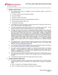 LHSTM INTELLIGENT LINEAR HEAT DETECTION SYSTEM 1. GENERAL SPECIFICATION 1.1 The contractor shall provide an Intelligent Linear Heat Detection System to perform the following functionality: A. Fire Alarm, Supervisory and Trouble-Event Initiation B. Occupant Notification C. Event Zone Location Annunciation D. Safety Procedures Activation and required Equipment Interlocks E. Fire-Extinguishing System release, and F. Off Premises Transmission. 1.2 The Intelligent LHS Linear Heat Detection System shall consist of a Kidde Aries control unit and LHS™ Linear Heat Sensor heat detection zones. 1.3 The linear heat detection zones shall consist of LHS™ Linear Heat Sensor cable – a fixedtemperature detector capable of detecting heat from a fire over its entire length. 1.4 The Kidde Aries control unit shall be an addressable, distributed-intelligence type control unit. Its distributed intelligence shall extend to the SmartOne® initiating devices on each signaling line circuit. Each initiating device shall have a microprocessor capable of independently determining whether or not a fire signature at its monitored location is of sufficient magnitude to warrant the issuance of an event signal to the control unit. Systems that use application-specific integrated circuits (ASICs) in the initiating devices, and rely on the control unit to analyze a stream of data from each initiating device to determine whether or not a fire signature is present at the initiating device’s location, shall not be considered to be of sufficient distributed intelligence. Such systems shall not be considered as equivalent to the equipment specified herein. 1.5 The Intelligent LHS™ Linear Heat Sensor Detection System must be manufactured and/or supplied by Kidde Fire Systems, 400 Main Street, Ashland, MA 01721, U.S.A., phone: (508) 881-2000, URL: http://www.kiddefiresystems.com 1.6 The manufacturer shall warrant the Intelligent LHS Linear Heat Detection System manufactured by it for a period of eighteen (18) months from the date of shipment. 1.7 The system shall be supplied and installed by a factory authorized Kidde Fire Systems distributor. The distributor shall be trained by the manufacturer to design, install, test and maintain the Intelligent LHS™ Linear Heat Sensor Detection System and shall be able to produce a certificate stating such on request. 1.8 The factory authorized Kidde Fire Systems distributor shall confirm in writing that he stocks a full complement of spare parts and offers 24-hour emergency service for all equipment being furnished. 1.9 All materials and equipment used for this project shall be new and unused. 2. CODES/STANDARDS COMPLIANCE 2.1 The design, installation, testing and maintenance of the Intelligent LHS™ Linear Heat Sensor Detection System shall be in accordance to the following codes, standards and regulatory bodies: A. NFPA 13: Standard for the Installation of Sprinkler Systems B. NFPA 15: Standard for Water Spray Fixed Systems for Fire Protection Kidde Fire Systems • April 2010 Page 1 of 6 LHSTM INTELLIGENT LINEAR HEAT DETECTION SYSTEM C. NFPA 16: Standard for the Installation of Foam-Water Sprinkler and Foam-Water Spray Systems D. NFPA 70: National Electrical Code E. NFPA 72: National Fire Alarm Code F. Factory Mutual Approval Guide (latest edition). G. Requirements of the local Authority Having Jurisdiction. 2.2 The Intelligent LHS™ Linear Heat Sensor Detection System shall be Factory Mutual System (FM) approved. 2.3 The manufacturer of the Intelligent LHS™ Linear Heat Sensor Detection System shall have a minimum of 15 years experience in the design, production and distribution of fire detection and fire alarm systems. 2.4 The manufacturer of the Intelligent LHS™ Linear Heat Sensor Detection System shall be certified to ISO 9001 for a minimum period of 5 years for the design, production and distribution of fire detection and fire alarm systems. 3. SYSTEM DESCRIPTION 3.1 The Intelligent LHS™ Linear Heat Sensor Detection System shall consist of a Kidde Aries control unit and the LHS™ Linear Heat Sensor Detection zones. Each zone shall consist of a LHS™ Linear Heat Sensor Cable and its Addressable Input Module (AI). The LHS™ Linear Heat Sensor cable shall be of a fixed-temperature detector capable of detecting heat from a fire over its entire length. 4. COMPONENTS – DESCRIPTION AND OPERATION 4.1 Basic Control Unit A. The control unit shall be a Kidde Aries Intelligent Control Panel. It shall consist of: 1. A printed-circuit board (PCB) with the main microprocessor, an integral display/control assembly, and terminations for all field circuits 2. A primary power supply 3. An enclosure with removable door and viewing window. B. The PCB shall contain the main system microprocessor, the real time clock, the history buffers, the watchdog timer, one USB device port and two RS-232 serial communications ports. It shall also provide terminations for the following field circuits: 1. One (1) signaling line circuit (SLC) 2. Two (2) notification appliance circuits (NACs) 3. Two (2) combination NAC / releasing circuits (Combos) 4. Two (2) releasing circuits 5. Three (3) programmable relays 6. One (1) trouble relay 7. One (1) RS-485 communications circuit 8. Battery Charging circuit 9. AC Input-power. Kidde Fire Systems • April 2010 Page 2 of 6 LHSTM INTELLIGENT LINEAR HEAT DETECTION SYSTEM C. The integral display and control assembly shall provide an 80-character, backlit liquid-crystal display (LCD). The LCD shall be 2 lines by 40 characters and each SLC initiating and/or control device shall be identifiable by a label of up to 40 characters in length. The display and control assembly shall have control keys for system reset, event acknowledgement, alarm silence and multiple event scrolling, plus additional navigation keys for access to the system service and configuration menus. All user access to the system menus shall be password protected. A system buzzer shall annunciate