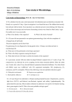 University of Babylon Case-study in Microbiology Dept. of microbiology College of Medicine _______________________________________________________________________________ Case-study in Bacteriology (Prof. Dr. Alaa Al-Charrakh): 1- Five children from the same school presented with abdominal pain and diarrhoea (streaked with blood) over a period of 3 days. Upon investigation it was found that one of the children had recently been abroad with his family. Fecal specimen was collected and sent to microbiology lab. Many pus cells on direct microscopy and non-lactose fermenting colonies were found on MacConkey’s agar. On motility test it was non-motile a. What is the identity of the organism? b. What is the mode of spread? 2- A 30 years old man presented to out-patient gastroenterology clinic with the complaints of: -Changed taste & bad breath -Recurrent epigastric pain & heart burn On gastroscopy he was diagnosed as having gastric ulcer. A biopsy was taken and sent to microbiology lab: a) What tests will be performed on the biopsy specimen? b) What is the likely organism causing the disease? c) What other lab tests will help to confirm the identity of the organism? 3- A previously normal, full-term infant developed bilateral conjunctivitis at 2 weeks of age. The conjunctivitis was followed by severe coughing, but the infant remained afebrile. When the infant was 4 weeks old, a chest X-ray showed bilateral symmetrical interstitial infiltrates. The white blood cell (WBC) count was 14,000/mm3 with 32% segmented neutrophils, 58% lymphocytes, 2% monocytes, and 4% eosinophils. Which of the following is the most probable infectious agent? A. Chlamydia trachomatis B. Streptococcus agalactiae C. Haemophilus influenza D. N. meningococcus 4. A 16-year-old girl was admitted to a Merjan teaching hospital because of hypotension, cyanosis, high fever (39.9°C), and bilateral, non-fluctuant, inguinal, and axillary lymphadenopathy. The patient died the same day. Blood cultures obtained on admission were positive for bipolar-staining, short, gram-negative bacilli. What is the most probable etiologic agent? A. Yersinia pestis B. K. rhinoscleromatis C. Francisella tularensis D. Brucella abortus 5- A woman brings her 2 ½-year-old child to the physician with complaints that the child is suffering ear pain and drainage, fever, lethargy and irritability. After examining the child, the doctor explains to the mother that the child has an ear infection. The physician prescribes a 7-day course of amoxicillin for the child. After 5 days, the mother and the child return to the physician’s office. The child’s condition has not improved and she still has pain and fever. The physician switches the infant to a 7-day prescription of amoxicillin/clavulanate (Augmentin) and the symptoms clear. What are possible explanations for this child’s initial lack of response to therapy and subsequent recovery? Case-study in Immunology: Q1/ An 18-year-old student with end-stage renal failure due to chronic glomerulonephritis was given a cadaveric kidney transplant. He had been on maintenance haemodialysis for 2 months, and on antihypertensive therapy for several years. His major blood group was A and his tissue type was HLA-A1, -A9, -B8, -B40, -Cw1, -Cw3, -DR3, -DR7. The donor kidney was also blood group A and was matched for one DR antigen and four of six ABC antigens. He was given triple immunosuppressive therapy with cyclosporin A, azathioprine and prednisolone. He passed 5 litres of urine on the second postoperative day and his urea and creatinine fell appreciably. However, on the seventh postoperative day, his graft became slightly tender, his serum creatinine increased and he had mild pyrexia (37.8°C). What is your diagnosis? How can you confirm it? Q2/A 48-year-old man was admitted for investigation of weight loss associated with intermittent diarrhoea. He had a history of pneumonia as a child and again as a young man working abroad. At the age of 33 he had developed chronic sinusitis, with persistent headaches. On examination he was thin but had no signs of malignancy. He had no clubbing and his chest was clear on auscultation. There was no lymphadenopathy and no hepatosplenomegaly. He was not anaemic, had a normal serum albumin and normal liver function tests. Immunological tests are shown in Table C3.3. No infective cause of the intermittent diarrhoea was found; barium enema was normal. Endoscopic examination of his maxillary sinuses showed considerable inflammation and hypertrophy of the mucosa. Serum immunoglobulins (g/l) IgG IgA IgM IgG1 IgG2 IgG3 IgG4 Antibody activity - post immunization IgG: tetanus toxoid diphtheria toxoid 7.2 <0.1 1.2 2.7 3.2 0.1 2.2 Negative [>0.85iu/ml] Negative [>0.2iu/ml] [6.5-12.0] [0.8-5.0] [0.5-2.0] [3.6-7.3] [1.4-4.5] [0.3-1.1] [0.1-1.0] pneumococcal polysaccharide Antibody activity - post exposure IgG: Rubella Measles Varicella zoster Blood lymphocyte subpopulations (x109/l) Total lymphocyte count T lymphocytes CD3 CD4 CD8 B lymphocytes CD19 Inadequate [>80U/ml] Not detectable Not detectable Not detectable 2.8 [1.5-3.5] 2.2 1.6 0.6 [0.9-2.8] [0.6-1.2] [0.4-1.0] 0.3 [0.2-0.4] *Normal adult ranges shown in brackets. What is your diagnosis? Q3/ A 25-year-old joiner presented with a 12-month history of an intensely itchy 'nettle rash' on his chest and back. The lesions appeared suddenly and lasted from 6 to 12h, to be replaced by new lesions at other sites. The lesions varied in size from a few millimetres to several centimetres. Attacks occurred two to three times each week. In addition, he had experienced four episodes of sudden swelling of lips which took 48h to subside. He said he looked as though he had been punched. He was unaware of any triggering factors and there was no personal or family history of atopy. His general health was excellent and he was not taking any medications. On examination, the lesions consisted of raised, red, irregular patches, some with white centres, and were 