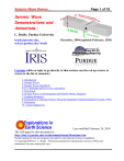 Seismic Wave Demos… Page 1 of 18 Seismic Wave Demonstrations and Animations 1 L. Braile, Purdue University braile@purdue.edu, web.ics.purdue.edu/~braile December, 2004 (updated February, 2010) Contents (click on topic to go directly to that section; use the red up arrows to return to the list of contents): 1. Introduction 2. Seismic Waves 3. Seismic Wave Animations 4. P, S, Rayleigh and Love wave animations 5. Downloads 6. Seismic Waves on Seismograms and Particle Motion Diagrams 7. Teaching Strategies 8. Connections to National Science Education Standards (National Research Council, 1996) 9. References 10. Acknowledgements Last modified February 26, 2010 The web page for this document is: http://web.ics.purdue.edu/~braile/edumod/waves/WaveDemo.htm Partial funding for this development provided by the National Science Foundation. Copyright 2004-10. L. Braile. Permission granted for reproduction and use of files and animations for non-commercial uses. Seismic Wave Demos… Page 2 of 18 1. Introduction: Seismic wave animations are used to illustrate different types of wave propagation through elastic materials. Animations are provided to view wave propagation in a 3dimensional solid for Compressional (P), Shear (S), Rayleigh (R) and Love (L) waves. Wave characteristics and particle motions of these wave types can be easily illustrated using the seismic wave animations. This tutorial is available for viewing with a browser (html file) and for downloading as an MS Word document or PDF file at the following locations: http://web.ics.purdue.edu/~braile/edumod/waves/WaveDemo.htm http://web.ics.purdue.edu/~braile/edumod/waves/WaveDemo.doc http://web.ics.purdue.edu/~braile/edumod/waves/WaveDemo.pdf A related PowerPoint presentation for seismic waves and the slinky is available for download at: http://web.ics.purdue.edu/~braile/new/SeismicWaves.ppt. Return to list of contents 2. Seismic Waves: The main seismic wave types are Compressional (P), Shear (S), Rayleigh (R) and Love (L) waves. P and S waves are often called body waves because they propagate outward in all directions from a source (such as an earthquake) and travel through the interior of the Earth. In the animations shown here, the P and S waves are shown propagating horizontally, parallel to the Earth’s surface. Love and Rayleigh waves are surface waves and propagate approximately parallel to the Earth’s surface. Although surface wave motion penetrates to significant depth in the Earth, these types of waves do not propagate directly through the Earth’s interior. Descriptions of wave characteristics and particle motions for the four wave types are given in Table 1. Further information on seismic waves, wave propagation in the Earth, and visualizations of seismic waves can be found in Bolt (1993, p. 27 and 37; 2004, p. 21) and Shearer (1999, p. 32 and 152). Information on teaching about seismic waves and demonstrations of seismic wave characteristics using a slinky are provided at: http://web.ics.purdue.edu/~braile/edumod/slinky/slinky.htm. A four-page teacher’s guide about seismic waves and the slinky is available as an MS Word document at: http://web.ics.purdue.edu/~braile/edumod/slinky/slinky4.doc, or, as an html file at: http://web.ics.purdue.edu/~braile/edumod/slinky/slinky4.htm. Seismic Wave Demos… Page 3 of 18 Table 1: Seismic Waves Wave Type (and names) Particle Motion Typical Velocity Other Characteristics P, Compressional, Primary, Longitudinal Alternating compressions (“pushes”) and dilations (“pulls”) which are directed in the same direction as the wave is propagating (along the ray path); and therefore, perpendicular to the wavefront. VP ~ 5 – 7 km/s in typical Earth’s crust; >~ 8 km/s in Earth’s mantle and core; ~1.5 km/s in water; ~0.3 km/s in air. P motion travels fastest in materials, so the P-wave is the first-arriving energy on a seismogram. Generally smaller and higher frequency than the S and Surface-waves. P waves in a liquid or gas are pressure waves, including sound waves. S, Shear, Secondary, Transverse Alternating transverse motions (perpendicular to the direction of propagation, and the ray path); commonly approximately polarized such that particle motion is in vertical or horizontal planes. VS ~ 3 – 4 km/s in typical Earth’s crust; >~ 4.5 km/s in Earth’s mantle; ~ 2.5-3.0 km/s in (solid) inner core. S-waves do not travel through fluids, so do not exist in Earth’s outer core (inferred to be primarily liquid iron) or in air or water or molten rock (magma). S waves travel slower than P waves in a solid and, therefore, arrive after the P wave. L, Love, Surface waves, Long waves Transverse horizontal motion, perpendicular to the direction of propagation and generally parallel to the Earth’s surface. Love waves exist because of the Earth’s surface. They are largest at the surface and decrease in amplitude with depth. Love waves are dispersive, that is, the wave velocity is dependent on frequency, generally with low frequencies propagating at higher velocity. Depth of penetration of the Love waves is also dependent on frequency, with lower frequencies penetrating to greater depth. R, Rayleigh, Surface waves, Long waves, Ground roll Motion is both in the direction of propagation and perpendicular (in a vertical plane), and “phased” so that the motion is generally elliptical – either prograde or retrograde. VL ~ 2.0 - 4.4 km/s in the Earth depending on frequency of the propagating wave, and therefore the depth of penetration of the waves. In general, the Love waves travel slightly faster than the Rayleigh waves. VR ~ 2.0 - 4.2 km/s in the Earth depending on frequency of the propagating wave, and therefore the depth of penetration of the waves. Rayleigh waves are also dispersive and the amplitudes generally decrease with depth in the Earth. Appearance and particle motion are similar to water waves. Depth of penetration of the Rayleigh waves is also dependent on frequency, with l