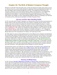 Chapter 24: The Birth of Modern European Thought During the second half of the nineteenth century with the development of modern nation states (especially the unification of Germany and Italy) and the dramatic developments of the Second Industrial Revolution, the ideas that shaped modern European thought also took form. The foundation had been built on the Classical Civilizations of the Ancient World and their rebirth in the Renaissance. The Enlightenment continued these developments by introducing rationalism and an appreciation of science. Then Romanticism led Europeans to value human feelings, imagination and nationalism. In this chapter we shall examine new thoughts in science, unprecedented intellectual attacks on Christianity, new directions in Feminism and the coalescing (coming together) of Modern European Culture. Literacy and the New Reading Public In 1850, only about half of Europe’s population was literate (able to read) and in Russia the proportion of literate citizens was the least. But the next fifty years would see a dramatic growth in literacy which would, in turn, help to propel the development of modern European thought and culture as a massive reading public came into existence. Prussia and Austria were over a century ahead of the rest of Europe. Under Frederick the Great, public education had been made compulsory for children between the ages of five and thirteen in 1763; and this was extended to the German Empire in 1871. Frederick’s rival, the Empress Maria Theresa, made education compulsory for both boys and girls in 1775 - although her reforms failed to reach the more rural areas. Hungary provided for elementary education in 1868, Great Britain followed in 1870, Switzerland in 1874, Italy in 1877 and France in 1881. By 1900, eighty-five percent of the population (plus) in Great Britain, France, Belgium, the Netherlands, the German Empire and the Scandinavian nations were literate while thirty to sixty percent of the people in Spain, Russia, the Balkans, Austria-Hungary and Portugal were literate. This new literacy was based on the basic fundamentals of education (reading, writing and arithmetic) and was championed by both liberals and conservatives in order to create orderly and intelligent voters. This idea was based on the Enlightenment principle that right knowledge would lead to right action. As the number of schools and school teachers grew in numbers (and prestige), so did the awareness that more and better education led to better jobs. At the same time, many nations began to lay the framework for secondary education and, after World War I, more opportunities became available for university education. Growing literacy meant a vast market for new reading materials. Newspapers, books, magazines and libraries grew rapidly. Cheap newspapers like Le Petite Journal of Paris and The Daily Express of London became immensely popular and carried advertising that alerted readers to new consumer products. Political and religious magazines and pamphlets also appeared along with journals for academia, women and free thinkers. But much literacy was minimal (at low levels of comprehension). And that encouraged cheap newspapers and books which made money by relating sensational crimes and political scandals. Novels about love (especially sordid love) multiplied and newspaper editorials helped shape public opinion - and were often censored, especially in Eastern Europe. And even though much of the new literature was in poor taste, it did lay the basis of our modern literary milieu. Science at Midcentury In 1850, Newton's Principia (Mathematical Principles of Natural Science) formulated the laws of motion and universal gravitation that still dominate science. Scientists continued to believe that nature operated like an incredibly large machine and that the physical world was rational (based on facts), mechanical (caused by physical processes) and dependable (calculable or steady). William Whewell of Cambridge University in England first coined the word Scientist to describe those who studied the physical world in growing numbers in French, German, British (and American) Universities. 1 Positivism During the second half of the nineteenth century, science continued to establish itself as the model for all human knowledge. The French philosopher Auguste Comte (1798-1857), strongly influenced by the Utopian Socialist Henri Saint-Simon, developed Positivism which stated that information derived from logical, mathematical principles and sensory experience was the only source of knowledge. Between 1830 and 1842, Comte published The Course in Positivist Philosophy, in which he argued that human thought had developed through three stages. In the first, or Theological Stage, nature was explained in terms of gods or spirits. During this first stage, mankind blindly believed whatever they were taught by their ancestors. In the second, or Metaphysical Stage, abstract principles [basic truths or facts about nature] were regarded as the operative agents [units] of nature; in the final or Positive Stage, explanations of nature became matters of exact description of phenomena, without reference to unobservable operative principles. As far as Comte was concerned, physical science had entered the Positive State and similar thinking should be used in other areas of nature, especially social science. Comte believed that positive laws of social behavior could be discovered in the same way as the laws of physical science. Thus, Comte is often regarded as the Father of Sociology [or the study of society, social institutions, and social relationships]. The work of Comte convinced many Europeans that all knowledge and learning must be patterned after scientific knowledge. Thus from the mid nineteenth century onwards, the relationship of science to technology and the Second Industrial Revolution created in the general European public an awareness of science and technology as never before. The Briti