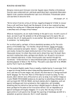 READING HEXAMETERS Georgica reverso post Actiacam victoriam Augusto atque Attellae reficiendarum faucium causa commoranti per continuum quadriduum legit, suscipiente Maecenate legendi vicem, quotiens interpelleretur ipse vocis offensione. Pronuntiabat autem cum suavitate et lenociniis miris. Vita Donati, 27 - 8 “On his return from his victory at Actium, Augustus stopped at Attella to recover from a cold; and there Vergil read the Georgics to him on four consecutive days, handing the reading over to Maecenas whenever his voice gave out. His delivery had a sweetness and a strange attractiveness.” When we read poetry, we are really listening to the poet’s voice. As with a score of music, we need to put the symbols on the printed page back into sound. We can cultivate the art of reading poetry to one another. But we MUST learn to speak it to ourselves – by reading aloud. For no other poetry, perhaps, is this so absolutely necessary as for the Latin poetry of the Golden Age – for Catullus, Vergil and Horace. Sermo and oratio – intimate conversation and public rhetoric – together with Greek and some older Latin books, formed the staple intellectual diet of the literary circles in which these poets moved, for whom they wrote and to whom they read. No doubt there was much reading done alone, perhaps even silently; but the poet’s voice was an ever-renewed experience. A wider literary public was reached through the recitations – formal and more or less professional public programmes – which were becoming popular at Rome in the Thirties. This poetry was expected to be HEARD and for that it had to be SPOKEN. For the modern English reader there is usually a double barrier to overcome: first, a vague but strong inhibition about doing anything demonstrative, even with his voice, and even in his own tongue; and, second, the alien-ness of a foreign and booklearnt language. For the first there is little help but to learn by doing. For the second, where instinct and a little practice carry us along in our mother tongue as it were FROM THE INSIDE (unless we are aspiring to something professional); in Latin we begin ON THE OUTSIDE, and must analyze what is happening, work out special techniques and train ourselves by their application, until gradually something like the instinctive feel we have in English begins to develop. It will never perhaps be the same as the true native instinct; but our dependence on special techniques will largely disappear. It is a pity that the way to the full appreciation of Latin poetry lies through the acquiring of knowledge and skill of a somewhat un-poetical character. But it is well rewarded. 1 It is useful to distinguish three stages in reading: reading correctly; reading naturally; reading expressively. Let us briefly look at each of these in relation to the Hexameter. 1. READING CORRECTLY. A) Pronunciation of vowels and consonants, and of their combinations in syllables and words. It is worth distinguishing three elements under this head: i) The actual sounds we make with our speech organs to represent the letters on the printed page. ii) Stemming from this, the sense of the difference in duration between the long and short vowels and syllables (on which, of course, the metre is based). iii) The accentuation of words On all these matters, but especially the first, W.S. Allen’s “Vox Latina” is most informative and helpful. The bad old days are now past by half a century, when Englishmen pronounced Latin as though it were English, saying for instance the word cives with a hard S at the beginning, a Z at the end, a hard V, and I as in child, and an E as in these. Even so, our native instinct and early training usually produce some ingrained bad habits and mistakes, which have to be painfully unlearned. We must admit, of course, that we can never hope to speak as Vergil spoke, or even always be confident that we know how he spoke. But we know a good deal; and by making the most of it we can hope to capture most of that part of the poetry’s music, which depends on the actual sound of its words. By way of compensation for our failings in the sounds we make, our native instinct seems to guide us quite naturally to the right accentuation of Latin words. This is a great asset when we come to appreciate the interplay of the twofold stresses – that of the feet and that of the words – which is part of the very life of the Hexameter. We shall need to have the rules only to deal with certain special matters; in general, we can follow our instinct about accent. B) Scansion of the metre by dactyls and spondees. Most of us have already acquired the skill of scanning on paper, marking elisions, quantities, feet and caesura. Fewer can scan “at sight”, that is to say, pick up the movement of a line as they read it, and of line after line as they read a continuous passage. This, however, is what we must achieve – by patient practice – before we can learn to read naturally, with appreciation and enjoyment. 2 2. READING NATURALLY. Once we can scan at sight, and ignoring for the moment the problem of how to read elisions (see appended note), we have two main preoccupations. A) The interplay of the metrical stress, called ictus (and marked thus: àrma) with the word stress, called accent (and marked thus: árma). It is the interplay between the “beat” of the metre (ictus = stroke), which in the hexameter falls on the first syllable of each of the six feet, and the ordinary speech-accent of the words composing the line. Any Hexameter line will show the counterpoint effect whereby the two kinds of stress sometimes fall together on the same syllable, (which is then marked thus: àrma), and sometimes separately on alternate syllables, thus: (Aen.i.1). à’rma vi / rù’mque cá / nò, // Trói / àe qui / prì’mus ab / ò’ris. More precisely, there is normally counterpoint in the first four feet, and uniform coincidence in the last two. The effect is t