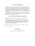 HUMAN PHYSIOLOGY Physiology is the study of how organisms work or function whereas anatomy is the study of the structure of living organisms. The functioning of an organism involves various changes, which maintain the stability of the internal environment (homeostasis) and keep the organism alive. Homeostasis is the maintenance of constant internal conditions (such as blood chemistry, temperature, and blood pressure) by the body’s control systems. A homeostatic system is constantly reacting to external forces so as to maintain limits set by the body’s need. Physiology is concerned with the changes that take place, where in the organism these changes occur and how they are regulated. Therefore, there is a need to understand physiology for one to understand nutrition better. Levels of human biological organization Human beings are as simple as a collection of atoms and as complex as a single organism. Beginning as tiny units, atoms combine millions of times to form living organisms. First molecules form, then many molecules combine to form cells. Cells combine and become tissue, which connects to form organs. The interaction of organs forms a coordinated system, called an organism. The human body is just such a coordinated unit of many organ systems. Atoms system molecules cells tissues organs body organism Human cell Details of structure of a typical animal cell. 1 Structure and function of cellular components COMPONENT STRUCTURE Cell/plasma membrane Membrane composed of phospholipid and protein molecules. Cytoplasm Fluid, jellylike substance in which organelles are suspended. Endoplasmic System of interconnected reticulum membrane-forming canals and tubules. Ribosomes Golgi apparatus Mitochondria Granular particles composed of protein and RNA Cluster of flattened membrane sacs Lysosomes Membranous sacs with folded inner partitions Membranous sacs Peroxisomes Spherical membranous vesicles Centrosome Nonmembranous mass of two rodlike centrioles. Membranous sacs Vacuoles Fibrils and microtubules Cilia and flagella Nuclear membrane Nucleolus Nucleus Chromatin Thin, hollow tubes Minute cytoplasmic extensions from cell Membrane surrounding nucleus, composed of protein and lipid molecules Dense, nonmembranous mass composed of protein and RNA molecules. A spherical stracture surrounded by its own membrane Fibrous strands composed of protein and DNA molecules. FUNCTION Gives form to cell and controls passage of materials in and out of cell. Serves as matrix substance in which chemical reactions occur. Smooth endoplasmic reticulum metabolizes nonpolar compounds and stores Ca++ in striated muscle cells; rough endoplasmic reticulum assists in protein synthesis. Synthesize proteins Synthesizes carbohydrates and packages molecules for secretion; secretes lipids and glycoproteins. Release energy from food molecules and transform energy into usable ATP. Digest foreign molecules and worn and damaged cells. Contain enzymes that produce hydrogen peroxide and use this for oxidation reactions. Helps organize spindle fibers and distribute chromosomes during mitosis. Store and excrete various substances within the cytoplasm. Support cytoplasm and transport materials within the cytoplasm. Move particles along surface of cell or move cell. Supports nucleus and controls passage of materials between nucleus and cytoplasm. Forms ribosomes Carries the genetic information needed to determine the exact nature of the protein that will be synthesized. Controls cellular activity for carrying on life processes. 2 METABOLISM Metabolism is the sum total of all the chemical reactions that go on in living cell; energy metabolism includes all the reactions by which the body obtains and spends the energy from food. Metabolism involves two types of reaction (catabolism and anabolism). Catabolism refers to reactions in which large molecules are broken down to smaller ones. Catabolic reactions usually release energy. . kata = down Anabolism refers to reactions in which small molecules are put together to build larger ones. Anabolic reactions require energy. . ana = up However, there are other pathways (progression of chemical reaction from the starting to the ending process) that connect anabolism and catabolism, described as amphibolic pathways. These include pathways that serve both catabolic and anabolic purposes, such as the citric acid cycle and oxidative phosphorylation. In any one cell of the body catabolic and anabolic processes are carried out simultaneously. Each chemical reaction requires a catalyst. Enzymes are protein substances, produced in cells, which act as biological catalysts (speed up chemical reactions without taking part). Enzymes are found throughout the body but are present in particularly large amounts in the digestive system. NB. There is a difference between an enzyme and a hormone. A hormone is a chemical substance produced in an endocrine gland and transported by the blood to other tissues where it influences function and metabolic activity. OR, hormones are chemical messengers. These are secreted by a variety of glands in response to altered conditions in the body. Each hormone travels to one or more specific target tissues or organs, where it elicits a specific response to maintain homeostasis. In general, a gastrointestinal hormone is called an enterogastrone. Enzymes vs. hormones All enzymes and some hormones are proteins, but an enzyme is not a hormone. Enzymes facilitate the making and breaking of bonds in chemical reactions; hormones act as chemical messengers, sometimes regulating enzyme action. In metabolism there are two of the most important metabolic processes, which take place in cells. These are energy production and protein synthesis. Energy production (respiration) Carbohydrates, fats and proteins contain chemical energy “locked up” in the molecules. Respiration is the breakdown of these substances and the subsequent release of energy. In order to remain alive, both animals and 