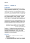 Teaching and Learning for a Sustainable Future © UNESCO 2010 MODULE 18: GLOBALISATION INTRODUCTION If climate change is the key process in the natural world impacting on sustainable development, then globalisation is the parallel process in the human world, creating both opportunities for, and barriers to, sustainable development. Globalisation is the ongoing process that is linking people, neighbourhoods, cities, regions and countries much more closely together than they have ever been before. This has resulted in our lives being intertwined with people in all parts of the world via the food we eat, the clothing we wear, the music we listen to, the information we get and the ideas we hold. This interconnectedness amongst humans on the planet is sometimes also referred to as the ‘global village’ where the barriers of national and international boundaries become less relevant and the world, figuratively, a smaller place. The process is driven economically by international financial flows and trade, technologically by information technology and mass media entertainment, and very significantly, also by very human means such as cultural exchanges, migration and international tourism. As one commentator remarked, we now live in a networked world. While globalisation is not a new process, it has accelerated rapidly since World War II, and is having many effects on people, the environment, cultures, national governments, economic development and human well-being in countries around the world. Many of these impacts are beneficial, but Jimmy Carter, a former President of the USA, has pointed out that many people are missing out on these benefits: Globalisation, as defined by rich people like us, is a very nice thing… you are talking about the Internet, you are talking about cell phones, you are talking about computers. This doesn’t affect two-thirds of the people of the world. Source: Jimmy Carter Quotes & Speeches These issues make the development of an understanding of globalisation, its various integrated forms, its driving forces and its impacts a vitally important education objective. Such a understanding can provide young people with critical insights into the social, cultural and political impacts of the globalising impacts of economic integration and communication technologies – as well as provide them with capacities to assess the costs and benefits in their lives an communities and those of people in other parts of the world. This provides an important ethical, as well as analytical, dimension to the study of globalisation. OBJECTIVES To understand basic concepts, processes and trends associated with globalisation; To assess the impacts of globalisation and the wide range of reactions they have caused around the world; To understand the interconnected nature of the major drivers of globalisation; To appreciate the complexity of teaching about globalisation; and To develop a rationale for integrating a global perspective in Teaching and Learning for a Sustainable Future. ACTIVITIES 1. 2. 3. 4. 5. 6. 7. Growing Connections Circles and Systems What is globisation? Drivers of globalisation Evaluating globalisation Globalisation: Further Investigations Reflection REFERENCES Anderson, S., Cavanagh, J. and Lee, T. (2005) Field Guide to the Global Economy, 2nd edition, Institute for Policy Studies, Washington DC. Bardhan, P. (2005) Globalization, Inequality and Poverty: An Overview, University of California, Berkeley. Bhagwati, J. (2004) In Defense of Globalization, Oxford University Press, New York. Bhalla, S. (2002) Imagine There’s No Country. Poverty, Inequality, and Growth in the Era of Globalization, Institute for International Economics, Washington DC. Broad, R. and Cavanagh, J. (2008) Development Redefined: How the Market Met its Match, Institue for Policy Studies, Washington DC. Held, D. et al.(1999) Global transformations: politics, economics and culture, Stanford University Press, Stanford CA. Hicks, D. and Holden, C. (eds) (2007) Teaching the Global Dimension: Key Principles and Effective Practice, Routledge, London. Lash, S. and Lury, C. (2007) Global Culture Industry: The Mediation of Things, Polity Press, London. Reich, R. (2007) Supercapitalism: The Transformation of Business, Democracy, and Everyday Life, Vintage Books, New York. Richardson, R. (2004) Here, There and Everywhere: Belonging, Identity and Equality in Schools, Trentham Books, Stoke-on-Trent. Steger, M. (2008) Globalisation: A Very Short Introduction, Oxford University Press, Oxford. Steger, M. (2009) Globalisation: The Great Ideological Struggle of the twenty-first Century, Rowman and Littlefield, Lanham MD. Stiglitz, J. (2002) Globalisation and Its Discontents, Norton & Company Inc., New York. Stiglitz, J. (2006) Making Globalization Work, Norton and Company, Inc., New York. Veseth, M. (2005) Globaloney: Unraveling the Myths of Globalisation, Rowman and Littlefield, Lanham MD. Wolk, M. (2004) Why Globalisation Works, Yale University Press. World Commission on the Social Dimension of Globalisation (2004) A Fair Globalisation: Creating Opportunities for All, International Labour Organisation, Geneva. INTERNET SITES ActionAid Center for Global Development Centre for Research on Globalization (Canada) – Global Research Center for Strategic and International Studies (State University of New York) – Globalization 101 Focus on the Global South Global Policy Forum Brookings Institute Center for Global Economy and Development Oneworld.net – Globalisation Guide UN Millennium Development Goal Indicators Database WIDER (World Institute for Development Economics Research) World Bank – Inequality Around the World World Commission on Globalisation: A Fair Globalisation – Creating Opportunities for All ACKNOWLEDGEMENTS We wish to thank the Yale Centre for the Study of Globalisation for providing the “Small Screen, Smaller World” to include on the CDRom version of this programme. CREDITS This module was w