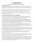 CHAPTER 13 The Rise of Mass Democracy, 1824–1840 CHAPTER THEMES Theme: The election to the presidency of the frontier aristocrat and common person’s hero, Andrew Jackson, signaled the end of the older elitist political leadership represented by John Quincy Adams. A new spirit of mass democracy and popular involvement swept through American society, bringing new energy as well as conflict and corruption to public life. Theme: Jackson successfully mobilized the techniques of the New Democracy and presidential power to win a series of dramatic political battles against his enemies. But by the late 1830s, his Whig opponents had learned to use the same popular political weapons against the Democrats, signaling the emergence of the second American party system. Theme: Amidst the whirl of democratic politics, issues of tariffs, financial instability, Indian policy, and possible expansion in Texas indicated that difficult sectional and economic problems were festering beneath the surface and not being very successfully addressed. CHAPTER SUMMARY (READ AND UNDERLINE) Beginning in the 1820s, a powerful movement celebrating the common person and promoting the “New Democracy” transformed the earlier elitist character of American politics. The controversial election of the Yankee sophisticate John Quincy Adams in 1824 angered the followers of Andrew Jackson. Jackson’s sweeping presidential victory in 1828 represented the political triumph of the New Democracy, including the spoils-rich political machines that thrived in the new environment. Jackson’s simple, popular ideas and rough-hewn style reinforced the growing belief that any ordinary person could hold public office. The “Tariff of Abominations” and the nullification crisis with South Carolina revealed a growing sectionalism and anxiety about slavery that ran up against Jackson’s fierce nationalism. Jackson exercised the powers of the presidency against his opponents, particularly Calhoun and Clay. He made the Bank of the United States a symbol of evil financial power and killed it after a bitter political fight. Destroying the bank reinforced Jacksonians’ hostility to concentrated and elite-dominated financial power, but also left the United States without any effective financial system. Jackson’s presidency also focused on issues of westward expansion. Pursuing paths of “civilization,” Native Americans of the Southeast engaged in extensive agricultural and educational development. But pressure from white settlers and from the state governments proved overwhelming, and Jackson finally supported the forced removal of all southeastern Indians to Oklahoma along the “Trail of Tears.” In Texas, American settlers successfully rebelled against Mexico and declared their independence. Jackson recognized the Texas Republic but, because of the slavery controversy, he refused its application for annexation to the United States. Jackson’s political foes soon formed themselves into the Whig party, but in 1836 they lost to his handpicked successor, Van Buren. Jackson’s ill-considered economic policies came home to roost under the unlucky Van Buren, as the country plunged into a serious depression following the panic of 1837. The Whigs used these economic troubles and the political hoopla of the new mass democratic process to elect their own hero in 1840, following the path of making a western aristocrat into a democratic symbol. The Whig victory signaled the emergence of a new two-party system, in which the two parties’ genuine philosophical differences and somewhat different constituencies proved less important than their widespread popularity and shared roots in the new American democratic spirit. Note Cards: TWO THINGS – what it is AND the SIGNIFICANCE (why is it important???). 1. 2. 3. 4. 5. 6. 7. 8. 9. 10. 11. 12. 13. 14. 15. 16. 17. 18. Election of 1824 Corrupt Bargain John Quincy Adams Andrew Jackson Twelfth Amendment Henry Clay The Corrupt Bargain National Republicans v. Democratic Republicans Jacksonian v. Jeffersonian Spoils System Tariff of 1828 Denmark Vesey Daniel Webster Tariff of Abominations The South Carolina Exposition John C Calhoun Nullies Nullification Crisis 19. 20. 21. 22. 23. 24. 25. 26. 27. 28. 29. 30. 31. 32. 33. 34. 35. 36. 37. Tariff of 1832 Henry Clay Tariff of 1833 Force Bill Sequoyah The Five Civilized Tribes Trail of Tears 1830 Indian Removal Act Bureau of Indian Affairs Black Hawk War Osceola Bank of the U.S. Bank War Campaign of 1832 Biddle’s Panic Specie Circular Democrats Anti Masonic Party Pet Banks 38. 39. 40. 41. 42. 43. 44. 45. 46. 47. 48. 49. 50. 51. 52. 53. 54. Specie Circular Whigs Martin Van Buren Election of 1836 Panic of 1837 Divorce Bill Independent Treasury Bill Stephen Austin Sam Houston Lone Star Republic Alamo Col. WB Travis Jim Bowie and Davy Crockett Goliad San Jacinto William Henry Harrison Jacksonian Democracy Chapter 13 Study Guide Thought Questions/Observations The "Corrupt Bargain” or 1824 1. The last of the Founding Fathers stepped down as President in 1824. Who were the four candidates offered as successors; evaluate their qualities for the Presidency. 2. What was unusual about John Quincy Adams's victory in the presidential election of 1824? 3. Why was the Secretary of State’s office such a “plum.” A Yankee Misfit in the White House 4. Evaluate John Quincy Adams’ qualities as President. 5. How did Adams antagonize the voters? Going "Whole Hog" for Jackson in 1828 6. Describe the tone and tactics used in the 1828 election. 7. In what way were the made against the candidates wrong? 8. What was the result of the popular vote? The electoral vote? “Old Hickory” as President 9. What was there about Andrew Jackson which made him a man of the people? On Democracy In America and Europe 10. Who was de Tocequeville? 11. Explain de Tocqueville’s central insight into the American character? 12. Analyze the two outcomes that de Tocqueville predicted The Spoi