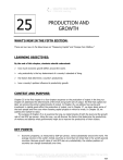 25 PRODUCTION AND GROWTH WHAT’S NEW IN THE FIFTH EDITION: There are two new In the News boxes on “Measuring Capital” and “Escape from Malthus.” LEARNING OBJECTIVES: By the end of this chapter, students should understand: how much economic growth differs around the world. why productivity is the key determinant of a country’s standard of living. the factors that determine a country’s productivity. how a country’s policies influence its productivity growth. CONTEXT AND PURPOSE: Chapter 25 is the first chapter in a four-chapter sequence on the production of output in the long run. Chapter 25 addresses the determinants of the level and growth rate of output. We find that capital and labor are among the primary determinants of output. In Chapter 26, we address how saving and investment in capital goods affect the production of output, and in Chapter 27, we learn about some of the tools people and firms use when choosing capital projects in which to invest. In Chapter 28, we address the market for labor. The purpose of Chapter 25 is to examine the long-run determinants of both the level and the growth rate of real GDP per person. Along the way, we will discover the factors that determine the productivity of workers and address what governments might do to improve the productivity of their citizens. KEY POINTS: Economic prosperity, as measured by GDP per person, varies substantially around the world. The average income in the world’s richest countries is more than ten times that in the world’s poorest countries. Because growth rates of real GDP also vary substantially, the relative positions of countries can change dramatically over time. This edition is intended for use outside of the U.S. only, with content that may be different from the U.S. Edition. This may not be resold, copied, or distributed without the prior consent of the publisher. 454 Chapter 25/Production and Growth 455 The standard of living in an economy depends on the economy’s ability to produce goods and services. Productivity, in turn, depends on the amounts of physical capital, human capital, natural resources, and technological knowledge available to workers. Government policies can try to influence the economy’s growth rate in many ways: encouraging saving and investment, encouraging investment from abroad, fostering education, promoting good health, maintaining property rights and political stability, allowing free trade, and promoting the research and development of new technologies. The accumulation of capital is subject to diminishing returns: The more capital an economy has, the less additional output the economy gets from an extra unit of capital. As a result, while higher saving leads to higher growth for a period of time, growth eventually slows down as the economy approaches a higher level of capital, productivity, and income. Also because of diminishing returns, the return to capital is especially high in poor countries. Other things being equal, these countries can grow faster because of the catch-up effect. Population growth has a variety of effects on economic growth. On the one hand, more rapid population growth may lower productivity by stretching the supply of natural resources and by reducing the amount of capital available for each worker. On the other hand, a larger population may enhance the rate of technological progress because there are more scientists and engineers. CHAPTER OUTLINE: I. Economic Growth Around the World Table 1 A. Table 1 shows data on real GDP per person for 13 countries during different periods of time. 1. The data reveal the fact that living standards vary a great deal between these countries. 2. Growth rates are also reported in the table. Japan has had the largest growth rate over time, 2.76% per year (on average). Use Table 1 to make the point that a one-percentage point change in a country’s growth rate can make a significant difference over several generations. The powerful effects of compounding should be used to underscore the process of economic growth. 3. Because of different growth rates, the ranking of countries by income per person changes over time. a. In the late 19th century, the United Kingdom was the richest country in the world. b. Today, income per person is lower in the United Kingdom than in the United States and Canada (two former colonies of the United Kingdom). This edition is intended for use outside of the U.S. only, with content that may be different from the U.S. Edition. This may not be resold, copied, or distributed without the prior consent of the publisher. 456 Chapter 25/Production and Growth B. FYI: Are You Richer Than the Richest American? 1. According to the magazine American Heritage, the richest American of all time is John B. Rockefeller, whose wealth today would be the equivalent of $200 billion. 2. Yet, because Rockefeller lived from 1839 to 1937, he did not get the chance to enjoy many of the conveniences we take for granted today such as television and air conditioning. 3. Thus, because of technological advances, the average American today may enjoy a “richer” life than the richest American who lived a century ago. C. FYI: A Picture Is Worth a Thousand Statistics 1. This box presents three photos showing a typical family in three countries – the United Kingdom, Mexico, and Mali. Each family was photographed outside their home, together with all of their material possessions. 2. These photos demonstrate the vast difference in the standards of living in these countries. II. Productivity: Its Role and Determinants A. Why Productivity Is So Important 1. Example: Robinson Crusoe a. Because he is stranded alone, he must catch his own fish, grow his own vegetables, and make his own clothes. b. His standard of living depends on his ability to produce goods and services. 2. Definition of productivity: the amount of goods and services a worker produces in each hour of work. 3. Review of Principle #8: A Country’s Sta