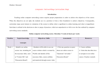 Ghadeer Abosaeed 1 Computer Networking Curriculum Map Introduction Teaching online computer networking course requires proper preparations in order to achieve the objectives of the course. When the objectives are set right, the students are in a position to form a firm foundation to achieve objectives. Consequently, curriculum maps assist trainers in evaluation of the course to define what is significant to online learning and what is insignificant. Such data is utilized in the decisions to alter or purge of practices, which are unproductive or fail to tow the line outlined by computer networking course standards. Online computer networking course- Duration: 5 weeks (6 hours per week) Timeline Topics/knowledge Objectives/ Skills Assessments Resources /concepts Week 1 - Identify our online - Students will be able to use our 1- Post any question or query 1- Course syllabus. course/ site, including all course website which is created by about our online course in 2- Video that describes how the necessary links, such Weebly and identify all the "Questions" tab under " to navigate in our online as "Contact Me" and necessary links, course syllabus Discussion Board.” course. (Teacher created). "Discussion Board", and materials through course video Ghadeer Abosaeed course materials, and course syllabus. 2 in the Home Page. - Students will be able to use telecommunications to communicate and interact with 2- Use "Contact Me" link to communicate with me in case of any questions or queries about the course and assignments. their educator and peers during the unit, such as e-mail, mobile, etc. Week 1 - What is a computer - Students will be able to expand 1- Online discussion within 1- Basic Networking tutorial- Network? their knowledge of the concepts of “Discussion Board” about: "http://www.techiwarehouse. - The basic components computer network. of any computer network, - Students will be able to identify such as computers, the basic components of any Networking Interface computer network. Card (NIC) and modem/ router. - Students will be able to create - What is a computer network? =d9e99072" - List the main components of computer network. 2- PowerPoint Presentation about basic networking - Respond to two other students’ components. (Teacher posts. created). multimedia presentations that are supported by variety of media and com/cms/engine.php?page_id 2- Under “Assignments” Tab: 3- Video About Networking Basics- Ghadeer Abosaeed 3 formats, such as pictures, graphics, - Choose any of the topics set for “http://www.youtube.com/wa websites and video clips. this week, and then create a - Students will be able to utilize “Discussion Board” to post their discussions. tch?v=GyTLPl5t-0Q” presentation using the PowerPoint program or any other presentation software (at least 8 slides). Week 2 - Types of Networks, - Students will be able to identify including LAN, WAN, the types of computer networks and MAN, and Internet. the differences between them. - Networking models/ - Students will be able to pinpoint categories such as, Peer- diverse network models, such as, to-Peer & Client-Server. Peer-to-Peer & Client-Server. 1- Online discussion: - Choose an article about ClientServer Model, and then write a report about it. 1- Basic Networking tutorial"http://www.techiwarehouse. com/cms/engine.php?page_id =d9e99072" 2- Free Online Presentation - Use a WebQuest tool (teacher created) to complete the specific - Students will be able to create task about creating a brochure professional brochure, which on networking models. About Types of Networking, "http://www.authorstream.co m/Presentation/aSGuest8551 5-822803-types-of- Ghadeer Abosaeed 4 displays their skills in the computer - Respond to two other students’ networking-by-alamgir/" use. posts about two subjects- article 3- YouTube Video About and brochure. Peer to peer and client server - Students will be able to utilize “Discussion Board” to post their discussions and “Contact Me” to submit any question. 2- Under “Assignments” Tab: networks, http://www.youtube.com/wat - Completion of Case Study Analysis assignment about types - Students will able to use of computer networks and the technological tools to gather differences between them. information for their projects, ch?v=HTCe4NN7pzk&featur e=related. 4- Article about Peer-to-Peer vs. Client-Server, http://www.informit.com/arti reports, assignments and researches cles/article.aspx?p=26437&s from variety of sources in order to eqNum=3 success in eLearning environment. 5- WebQuest (teacher created). Week 3 - Network protocols like - Students will be able to list the TCP/IP, FTP, Ethernet network protocols, describe the 1- Online discussion: - Choose two of protocols types 1- Protocol- Chapter 2, http://fcit.usf.edu/network/ch Ghadeer Abosaeed and HTTP. - What is a Network topology? - Network Topologies types, such as Star, Ring and Bus. 5 functions of each protocol and the used in networking, and then do differences between them. the comparison from different -Students will be able to recognize the concept of the Network topology. -Students will be able to learn about the types of network aspects, including access method, types of cabling, and speed of data transfer. their projects, reports, assignments and researches. =d9e99072" http://compnetworking.about. m/od/networkdesign/a/topologie articles to gather information for com/cms/engine.php?page_id Network Topologies, among them. websites, YouTube videos and "http://www.techiwarehouse. 3- Network Topologies, "http://compnetworking.about.co variety of online sources, such as 2- Basic Networking tutorial- - Read this article about topologies and the differences - Students will be able to use ap2/chap2.htm s.htm", and then write a summary about two types of network topologies. 2- Under “Assignments” Tab: - Completion of worksheet on various network protocols and com/od/networkdesign/a/topo logies.htm, AND, http://whatis.techtar