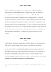 Analytic Memo Examples The following represents a complete set of three analytic memos completed by a graduate preservice teacher in a kindergarten classroom in an urban school setting. The children were primarily African American; the graduate preservice teacher was White. The study was a curriculum analysis of a scripted reading program. The critical question was, “How does the scripted reading curriculum represent race, socio-economic, and family structure and how might this influence teaching and learning in my urban school?” This combined set of memos shows the progression of data collection and ongoing analysis. The memos are unedited, except that all names are pseudonyms. There are several ways to read and learn from the memos; it may be useful to read with the criteria for trustworthy preservice teacher action research in hand; or read and then use the scoring guide for analytic memos; or read and act as the teacher/researcher’s critical colleague. Analytic Memo Example 1 (1 of 3) Critical Question: “How does the scripted reading curriculum represent race, socio-economic, and family structure and how might this influence teaching and learning in my urban school?” As a pre-service teacher I’m learning that understanding who you are teaching is imperative to becoming an effective teacher, and goes hand-in-hand with knowing what you are instructing. To thoroughly investigate how the scripted reading curriculum at Jefferson Elementary School influences teaching and learning in my classroom, I wanted to explore what and who the curriculum represents. This is the purpose and objective of my first data collection. Becoming a Teacher Through Action Research, Second Edition © 2010 Routledge / Taylor & Francis Group, LLC. I began by creating a table that defines several possible racial groups, socio-economic statuses, and family structures that could be represented within the curriculum and its materials. I used this table to calculate and clearly illustrate who is being represented by the curriculum. I have quickly realized, however, the challenge in creating such a tool. One of my greatest struggles was choosing which terms were most appropriate for the study and equitable to all. I sought the help of a critical colleague who is studying social work and advice from one of the graduate professors in multicultural education. Both provided valuable assistance and reference materials. The professor suggested that I use the terms of my school district. I felt that this was an excellent option since these are the accepted terms of the district. They are as follows: American Indian/Alaskan Native, Asian/Pacific Islander, Black, Hispanic, Multi-Racial, and White These terms are more inclusive than others for this study. For example, referring to people as black, opposed to African American, includes individuals who are not American or who are not of African descent. This is also important to my study because I accept materials at face value, illustrations will not explain to me the ethnicity of an individual, but the perceived race of an individual will represent who is included within the curriculum. There is a second dilemma to using terms to categorize individuals into people groups. Dr. Tatum (1997) explains this best when she writes “my dilemma about the language to use [in my book] reflects the fact that race is a social construction” (pg. 16). She continues by referencing Van De Berghe’s definition of race as; “‘a group that is socially defined but on the basis of physical criteria,’ including skin color and facial features” (pg. 16.). This means that people will define and view racial terms in a variety of ways. Unfortunately, “the original creation of racial categories was in the service of oppression” (pg. 17), and this is not the intent of my study! Rather, I hope that by providing and defining racial terms, I can use this vocabulary to explore who is most represented Becoming a Teacher Through Action Research, Second Edition © 2010 Routledge / Taylor & Francis Group, LLC. within the scripted reading curriculum. With this information, I will review how effectively the curriculum is relating to the student population at Jefferson. To collect data I used the Teacher’s Edition of the Level K: Unit 4 scripted reading curriculum text. I read the first five days of instruction within this unit, as well as the additional materials, and counted the number of times a particular race, socio-economic status, or family structure was represented. I included my collected data in a table for each lesson. However, below I have created a table which depicts the results from the total of all five days. Results Totaled From Individual Lesson Tables: Curriculum Materials Analysis Level: K Unit: 4 Theme: Wind Race, Socio-Economic Status, Family Structure represented: Black Number of times each is represented in materials used: 3 Hispanic 3 data White 6 reve Asian/Pacific Islander 0 als American Indian/Alaskan Native 1 Multi-Racial 0 Upper Class 3 out Middle Class 0 of Lower Class 0 six Single Parent/Guardian 0 Homosexual Parents/Guardians 0 Extended Family Guardians 0 Heterosexual Parents/Guardians 0 At a glan ce, the that cate gori es of race, four were represented. Of these four categories, the race with the highest percentage of representation was White (46%), followed by Black (23%) and Hispanic (23%), and finally, American Indian/Alaskan Native (8%). With this information I could easily conclude several Becoming a Teacher Through Action Research, Second Edition © 2010 Routledge / Taylor & Francis Group, LLC. things. For instance, that a person who is White will be represented twice as many times as someone who is Black or Hispanic. By looking at the rest of my data I could also surmise that only individuals of upper class socio-economic status are represented and no families are included. However, if I were to come to these conclusions I would be making very poor as