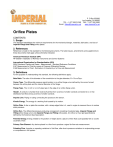 P. O Box 352262 Los Angeles, CA 90035 TEL – 1.877.552.FLOW FAX – 1.877.552.2565 Email: Sales@Imperialco.net www.ImperialCo.net Orifice Plates CONTENTS 1. Scope This standard establishes the minimum requirements for the mechanical design, materials, fabrication, and size of Imperial Flange and Fitting orifice plates. 2. References Reference is made in this standard to the following documents. The latest issues, amendments and supplements to these documents shall apply unless otherwise indicated. American Petroleum Institute (API) RP 550/551 Installation of Refinery Instruments and Control Systems International Organization for Standardization (ISO) 5024 Petroleum Liquids and Gases - Measurement - Standard Reference Conditions 5167 Measurement of Fluid by means of Pressure Differential Devices 5168 Measurement of Fluid - Estimation of Uncertainty of a Flow-rate Measurement 3. Definitions For the purpose of understanding this standard, the following definitions apply: Beta Ratio. The ratio of the diameter of the constriction to the pipe diameter, B = Dconst/Dpipe. Corner Taps. The differential pressure signal location in an orifice flange union defined by the corner formed between the orifice plate and the internal diameter of the flange. Flange Taps. The 1/2 inch or 3/4 inch pipe taps in the edge of an orifice flange union. Header. A conduit or chamber that receives fluid flow from a series of smaller conduits connected to it, or that distributes fluid flow among a series of smaller conduits. Impulse Line. Piping or tubing connecting the process to the sensor. Kinetic Energy. The energy of a working fluid caused by its motion. Orifice Plate. A disc or plate-like member, with a sharp-edged hole in it, used in a pipe to measure flow or to reduce static pressure. Orifice Run. The differential pressure producing arrangement consisting of selected pipe, Imperial Flange and Fitting orifice flange union and Imperial Flange and Fitting orifice plate. An orifice run has rigid specifications defined by the American Gas Association. Potential Energy. Energy related to the position or height above a place to which fluid could possibly flow or a solid could fall or flow. Primary Flow Element. Any device placed in a flow line to produce a signal for flow rate measurement. Pulsating Flow. Irregular or repeating variations in fluid flow, often due to pressure variations in reciprocating pumps or compressors in the system. P. O Box 352262 Los Angeles, CA 90035 TEL – 1.877.552.FLOW FAX – 1.877.552.2565 Email: Sales@Imperialco.net www.ImperialCo.net Reynolds Number. A dimensionless criterion of the nature of flow in pipes. It is proportional to the ratio of dynamic forces to viscous forces: the product of diameter, velocity and density, divided by absolute viscosity. Vena Contracta. The location where cross sectional area of the flowstream is at its minimum. The vena contracta normally occurs just downstream of the actual physical restriction in a control valve. 4. General 4.1 Any conflict(s) between this standard, SES and industry standards, engineering drawings, or contract documents shall be resolved at the discretion of IMPERIAL FLANGE AND FITTING. 4.2 Orifice plate technology is one of the most accepted, versatile, and simple methods of measuring flow. Applications are extremely broad, generally describing all flow measurements except those under extreme conditions of high viscosity, low static pressure or poor physical condition of the fluid, for example containing solids, dirt, heavy slurries and sewage. 4.3 Imperial Flange and Fitting Orifice plates are constructed in different types, concentric, conical, eccentric, integral, quadrant, and segmental. Concentric orifice plate is the most commonly used type, see Figure 1. 4.4 An orifice is a differential pressure (head) producing primary flow element for use with indicating, transmitting, totalizing, or combinations of secondary instruments accepting differential pressure input. A measure of the differential pressure created across the orifice plate is a measure of flow rate. 4.5 With sufficient information for orifice sizing, it is possible to design installations with errors of 1/2 to 1 percent of full scale depending upon Beta ratios and Reynolds numbers. This accuracy is required of flow measurement used for accounting purposes (material balance, buying, or selling). Installations normally provide errors of 1 to 4 percent. Common errors of flow measurement result from improper tap location, round edges (sharp-edged orifice), viscosity variation, inside pipe diameter differences, and impulse line head difference. 4.6 Accuracy is highly dependent upon correct fabrication and installation of the orifice plate and the associated piping. 4.7 The sum of static energy, kinetic energy, and the potential energy of the fluid is approximately consumed in the flow across a pipe. 4.8 The velocity of the fluid increases when the cross sectional area of the pipe is reduced. 5. Design 5.1 Orifice flow measurement is derived from Bernoulli’s Theorem and is given in the simplified equation: Q = kA √h/e Where Q = Volume flow rate A = Cross-sectional area of the pipe h = Differential pressure between taps e = Density of the flowing fluid k = Constant which includes the ratio of pipe diameter to orifice diameter (Beta ratio) and correction factors P. O Box 352262 Los Angeles, CA 90035 TEL – 1.877.552.FLOW FAX – 1.877.552.2565 Email: Sales@Imperialco.net www.ImperialCo.net 5.2 The basis of manufacture shall be in accordance with the latest ISO and ANSI data, using the ISO 5167 sizing equation, the ISO 5168 accuracy standard, and ISO 5024 volumetric standards. 5.3 Sizing calculation shall use base conditions of 15°C and 101.325 kPa. Flow values to be used shall be integers. 5.4 The orifice plate Beta ratio shall be between 0.20 and 0.60 for liquids and between 0.20 and 0.70 for gases and steam. Beta ratio of 0.75 is acceptable for orifice plates in 24 in