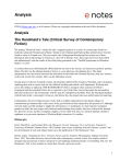 Analysis ©2014 eNotes.com, Inc. or its Licensors. Please see copyright information at the end of this document. Analysis The Handmaid’s Tale (Critical Survey of Contemporary Fiction) The parting “Historical Notes” clarify this tale’s supposed genesis as a series of cassette tapes found in a footlocker along the Femaleroad in Maine. Similar to the Underground Railroad that spirited slaves from the South to safety in Canada over 150 years earlier, this Underground Femaleroad led women out of their theological and social bondage in America to a free life in Europe. Now, these tapes have been transcribed and authenticated, with the results of this effort being presented to the “Twelfth Symposium on Gileadean Studies” in 2195. As a thirty-three-year-old Handmaid, Offred had but one role in her society, one function to perform: produce babies. Her life was the ultimate denial of choice or, seen otherwise, the ultimate glory. This latter interpretation was that which enlivened her household world within the Christian theocracy that was America in the early twenty-first century. Hers was the Gileadean society. Seizing power in the late twentieth century, the Guardians killed off the Congress, President, and Constitution, replacing them with a society built on strict biblical teaching and radical social adjustment. Working then across this tableau of upheaval, THE HANDMAID’S TALE is strongest when centered on Offred’s assignment and the household where she is expected to give birth. Here Atwood develops the personalities that enliven the novel: the Commander, with his urge for surreptitious Scrabble; Nick, the Guardian/chauffeur with the latter trade’s stereotypic roving eye; and Serena Joy, the gospel television starlet turned wizened hag. Unfortunately, this novel flags because it lacks both a credible explanation for the abrupt collapse of constitutional government and a clear sense of the good which has been replaced by the present evil. Although Atwood makes a feeble attempt to supply this information, it is inadequate; we must take her usurpation premise on faith. She may expect such faith and understanding from readers who have followed her through five previous novels, but this assumption cripples a novel which will, thus, be variously labeled a feminist nightmare or a prescient statement of Christian Right extremism. It is neither. Bibliography Grace, Sherrill E., and Lorraine Weir, eds. Margaret Atwood: Language, Text, and System. Vancouver: University of British Columbia Press, 1983. Includes nine essays examining Atwood’s literary “system” and her development of style and subject matter up to the publication of The Handmaid’s Tale. Greene, Gayle. Changing the Story: Feminist Fiction and the Tradition. Bloomington: Indiana University Press, 1991. The author discusses Atwood and other contemporary women writers who employ narrative strategies that incorporate women’s perspectives and challenge traditional modes of storytelling. She sees The Handmaid’s Tale as less feminist in vision than Atwood’s previous novels. 1 Hammar, Stephanie Barbe. “The World As It Will Be? Female Satire and the Technology of Power in The Handmaid’s Tale.” Modern Language Studies 22, no. 2 (Spring, 1990): 39-49. The article discusses The Handmaid’s Tale as a work with satiric intent. Atwood warns of the abuses of technology, the domination of women by men, and the propensity to allow oneself to be trapped in a rigid role. Kostash, Myrna, et al. Her Own Woman: Profiles of Ten Canadian Women. Toronto: Macmillan of Canada, 1975. Contains a biographical essay by Valerie Miner, “Atwood in Metamorphosis: An Authentic Canadian Fairy Tale,” that examines the evolution and maturation of Atwood’s writing. McCombs, Judith, ed. Critical Essays on Margaret Atwood. Boston: G. K. Hall, 1988. This valuable volume contains thirty-two reviews, articles, and essays on Atwood’s prose and poetry. The essays are arranged in chronological order. The volume contains a primary bibliography to 1986. Mendez-Engle, Beatrice, ed. Margaret Atwood: Reflections and Reality. Edinburg, Tex.: Pan American University Press, 1987. This selection of critical essays on Atwood’s work includes an interview with Atwood. The essays trace Atwood’s development as a writer and include a discussion of her use of fables. Rigney, Barbara Hill. Margaret Atwood. Totowa, N.J.: Barnes & Noble Books, 1987. An analysis of Atwood as poet, novelist, and political commentator, all from a feminist perspective. Includes a useful bibliography. Rosenberg, Jerome H. Margaret Atwood. Boston: Twayne, 1984. A concise literary biography of the Canadian novelist and poet that provides a useful introduction to her works. Van Spanckeren, Kathryn, and Jan Garden Castro, eds. Margaret Atwood: Vision and Forms. Carbondale: Southern Illinois University Press, 1988. This useful collection contains essays on Atwood’s works that are of uniformly high quality. Several essays deal with The Handmaid’s Tale. 2 The Plot (Critical Survey of Science Fiction and Fantasy) In the late 1980’s, an ultraconservative religious group toppled the U.S. government and established a totalitarian regime called Gilead. The leadership is strictly Christian in nature and ruthlessly fascist in practice. Using the former society’s plummeting birth rates as an excuse, the Gilead leaders force women into restricted roles in society, with little freedom or power. Couples in the upper classes who are without children are assigned Handmaids, who essentially are legal concubines intended to bear their hosts’ children. These Handmaids are fertile women who were politically unsafe, divorced, or in second marriages. The narrator is a Handmaid assigned to the family of a high-ranking commander. She loses her identity and original family, and she is renamed “of Fred” (the commander’s first name), or Offred. Offred is cared for by the family in exchange fo
